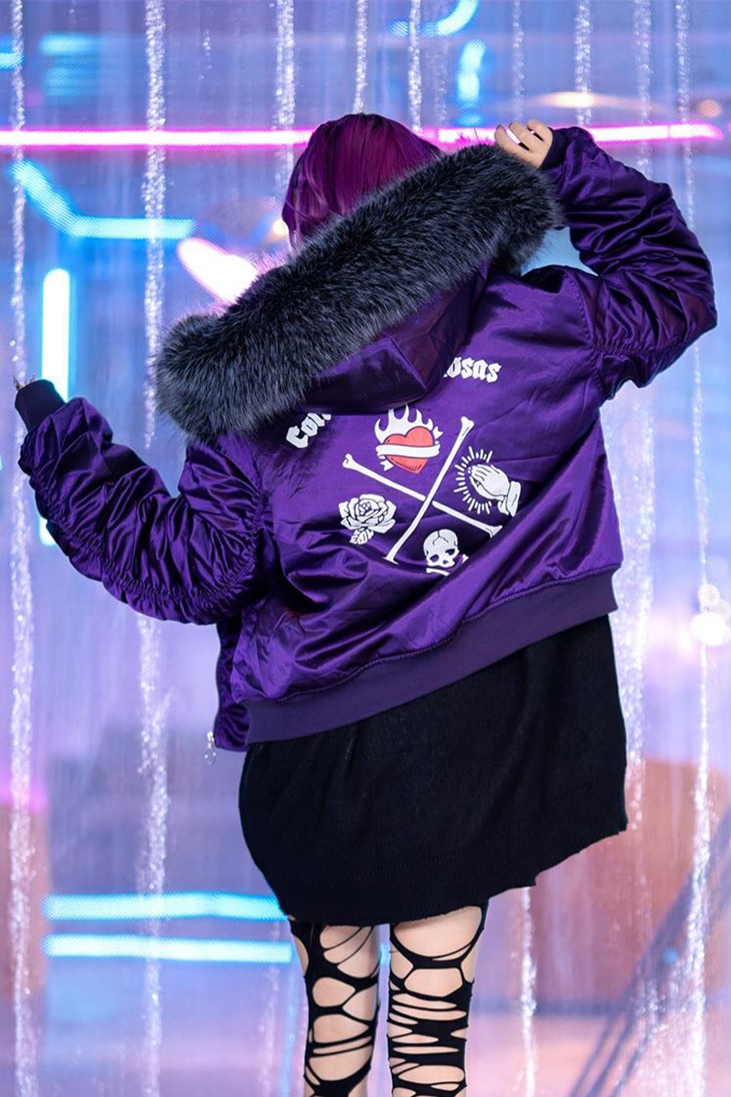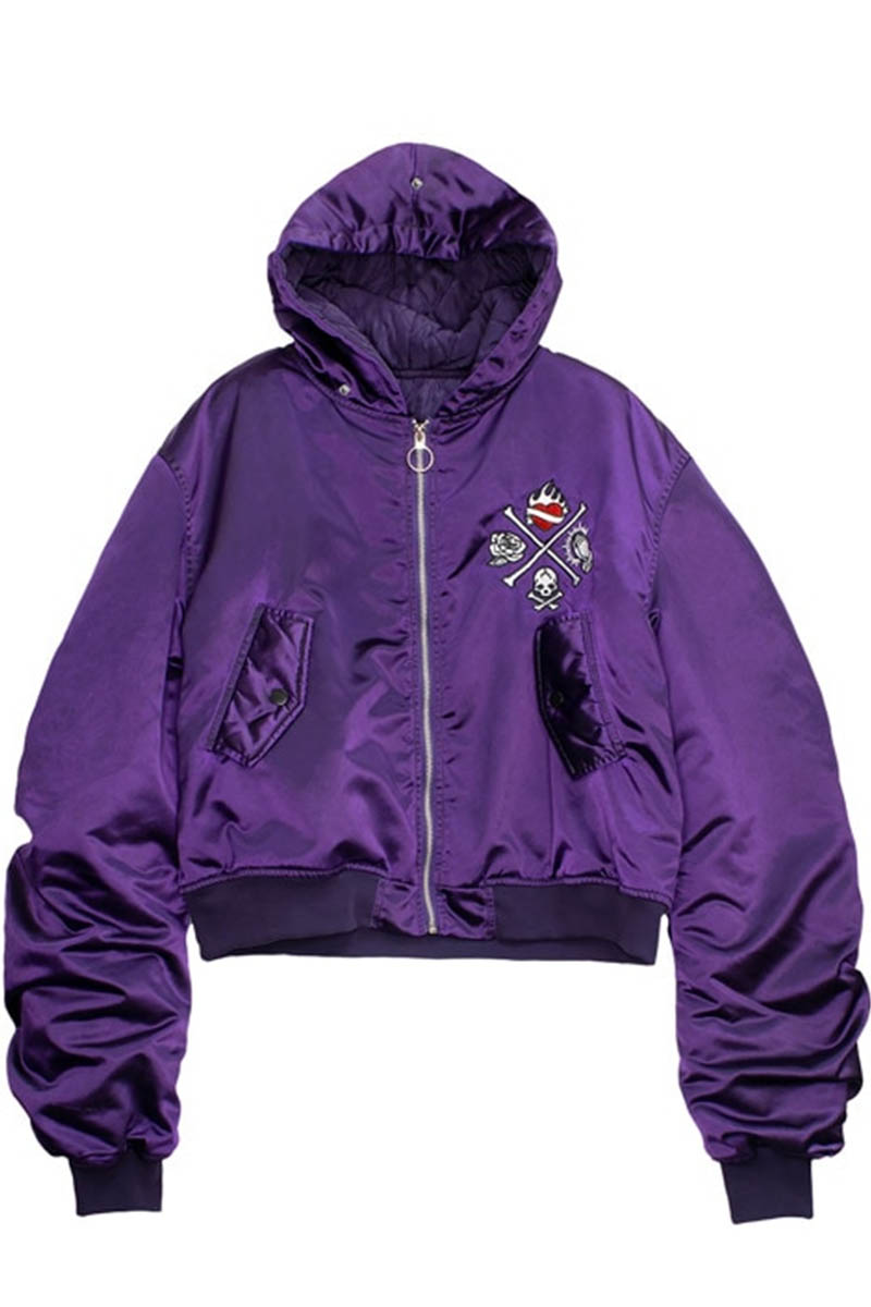 LISTEN FLAVOR (リッスン・フレーバー) 薔薇と祈りのMA-1フードブルゾン - Purple