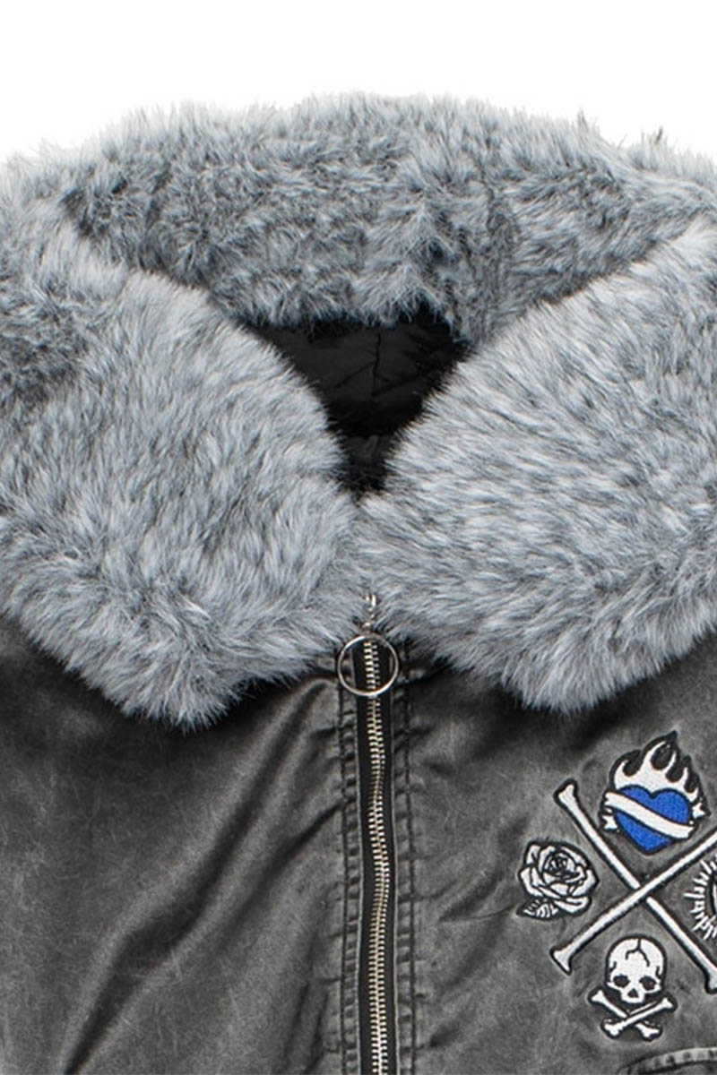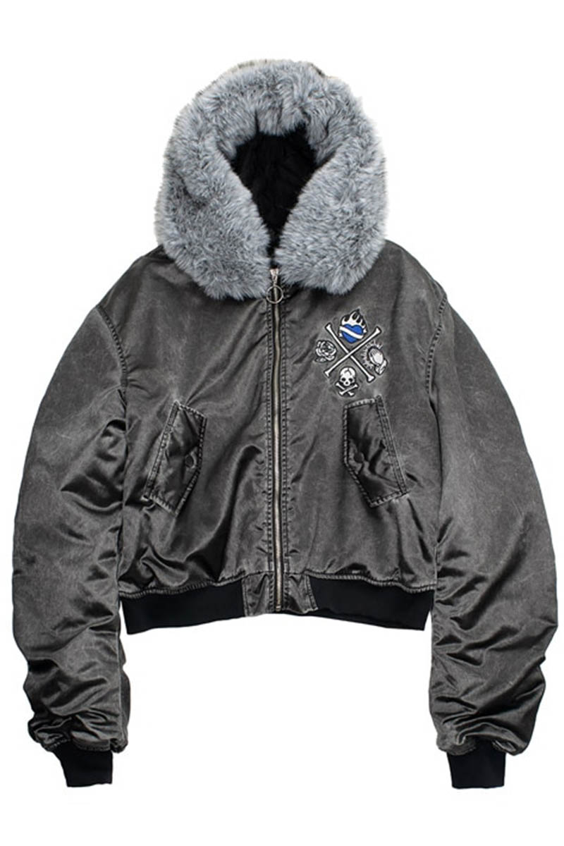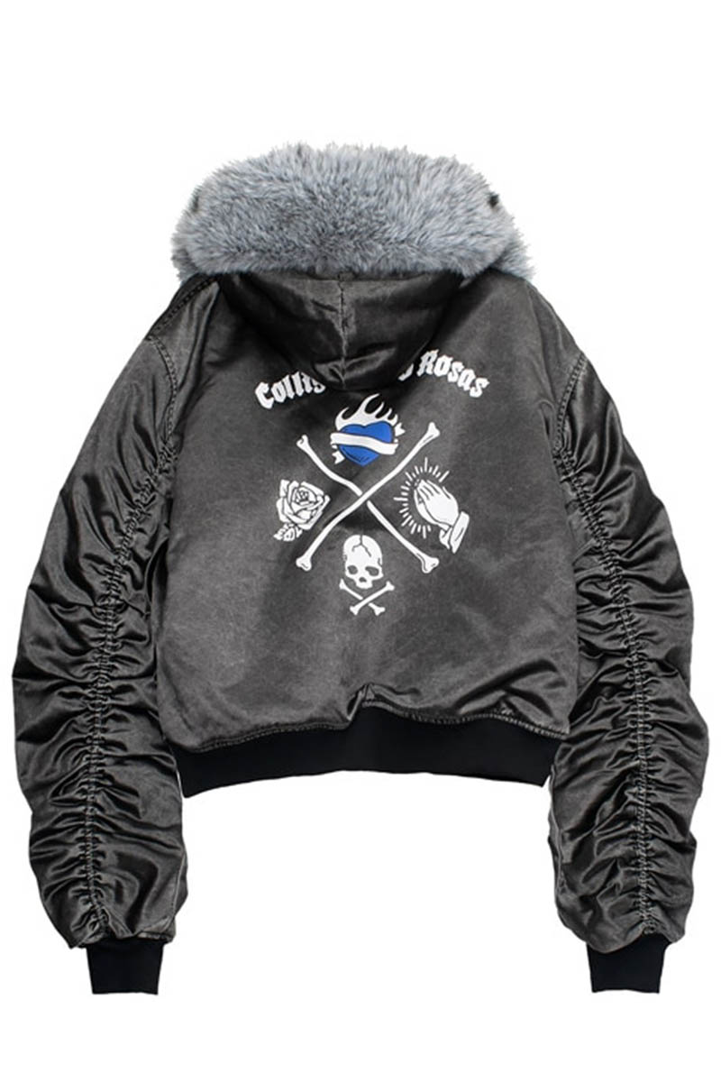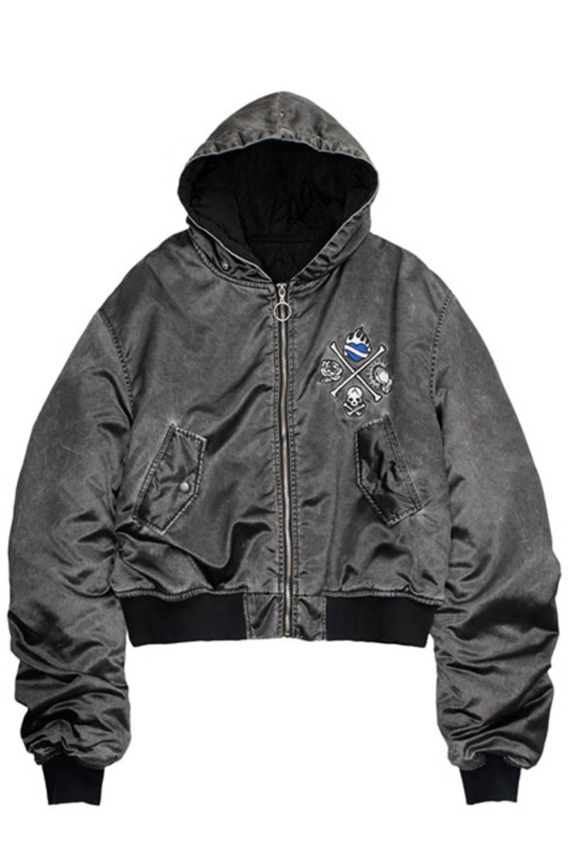 LISTEN FLAVOR (リッスン・フレーバー) 薔薇と祈りのMA-1フードブルゾン - Black