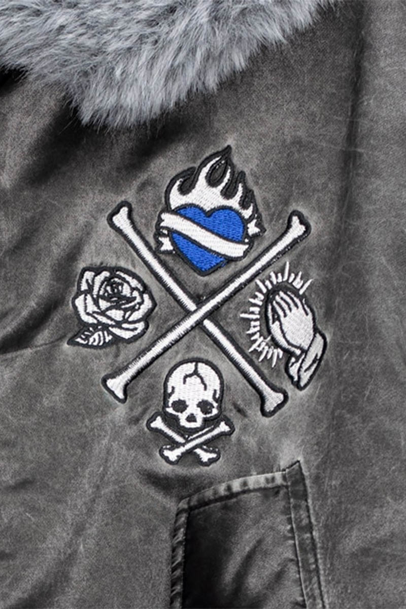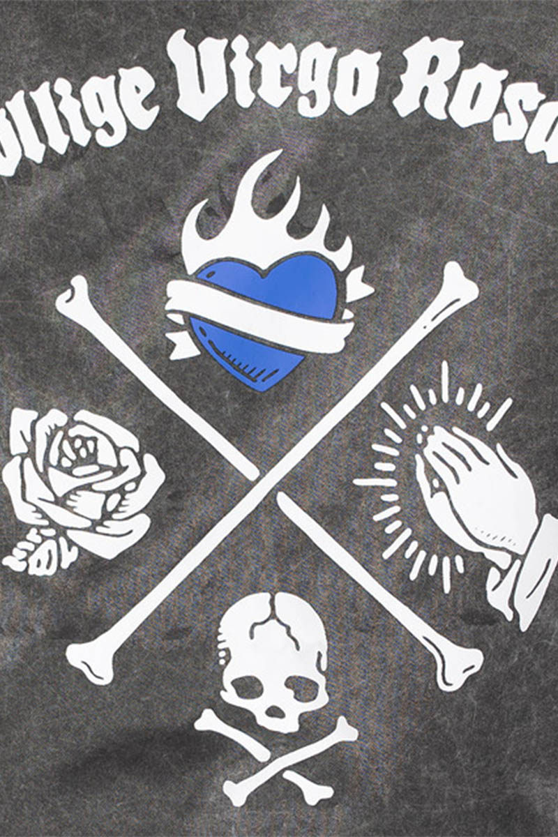 クロスボーンの胸元刺繍とバックプリントでストリートな印象に仕上げた特別感のある一枚♪