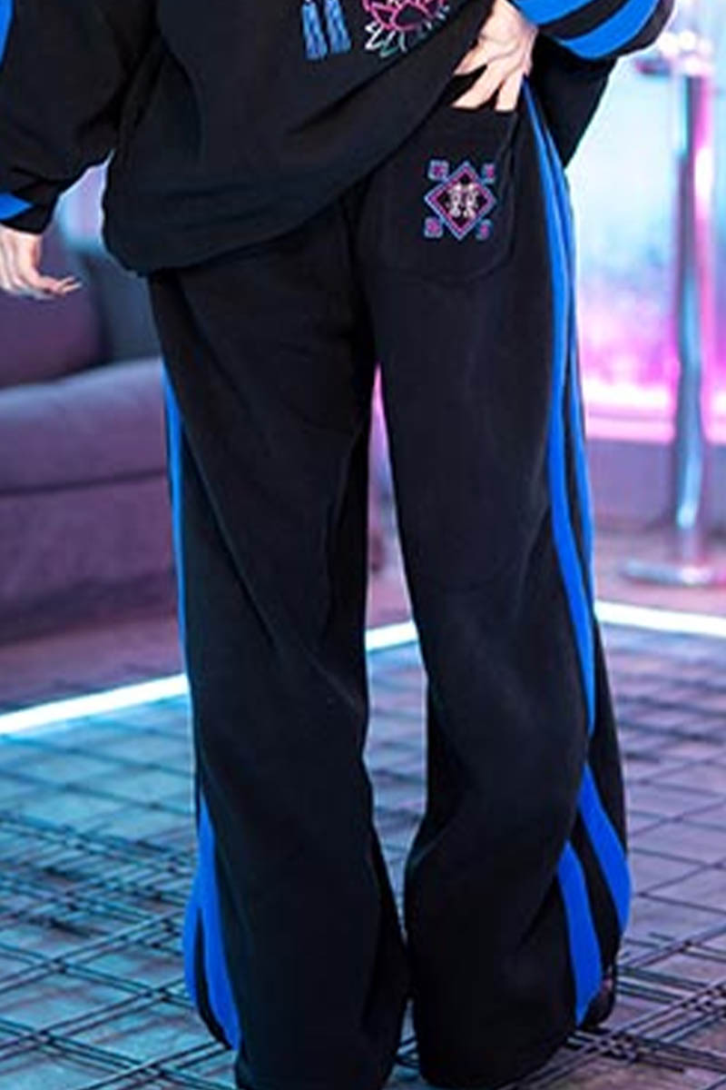LISTEN FLAVOR (リッスン・フレーバー) 招福チャイナフリースラインパンツ - Black x Blue