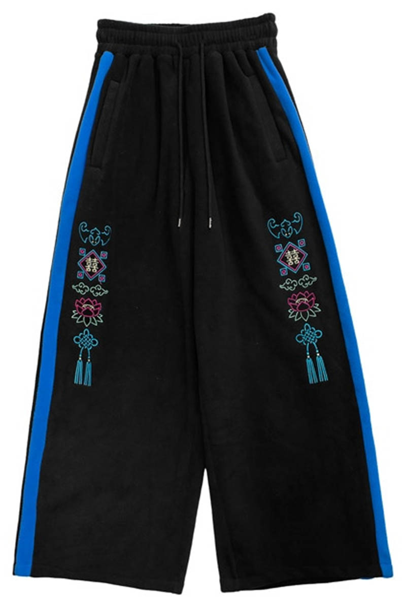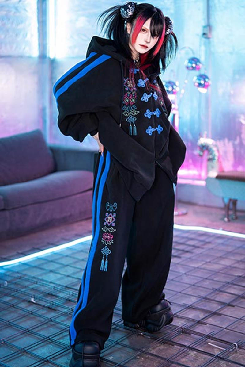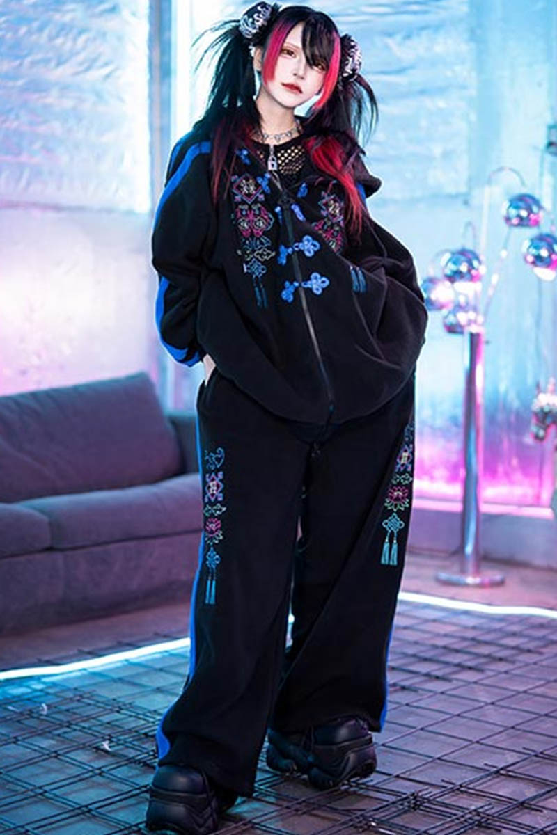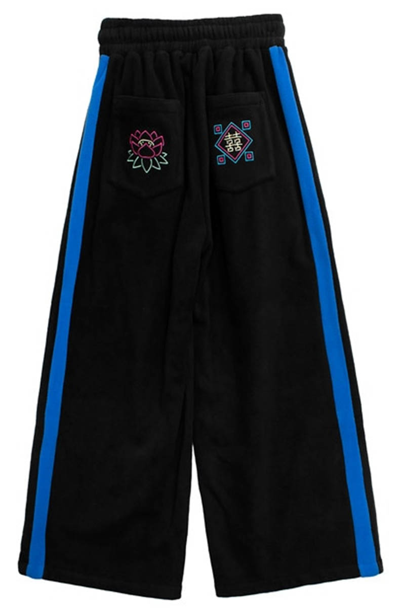 フロントと背面ポケットに豪華なチャイナ刺繍、目を引くカラーリングの極太のサイドラインで、異次元の可愛さに昇華したふわもこチャイナパンツ!