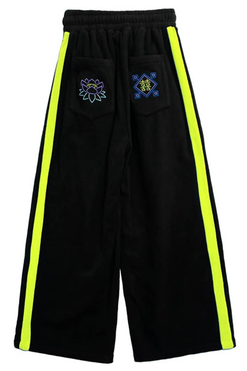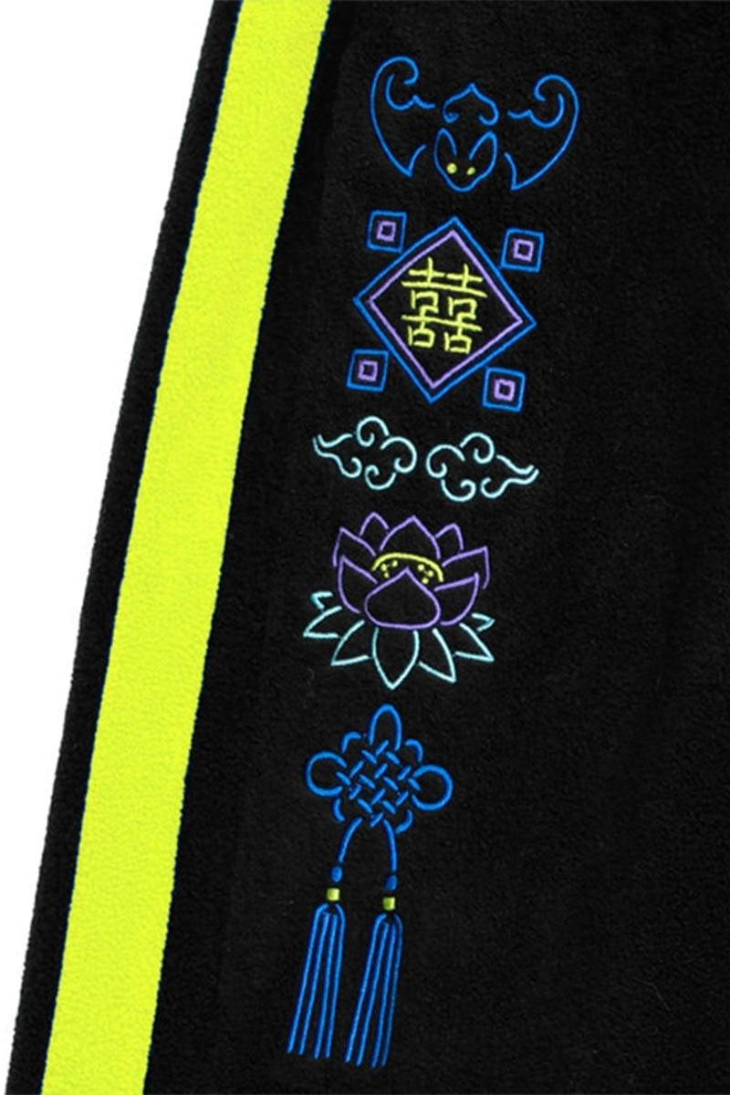 LISTEN FLAVOR (リッスン・フレーバー) 招福チャイナフリースラインパンツ - Black x Neon Yellow