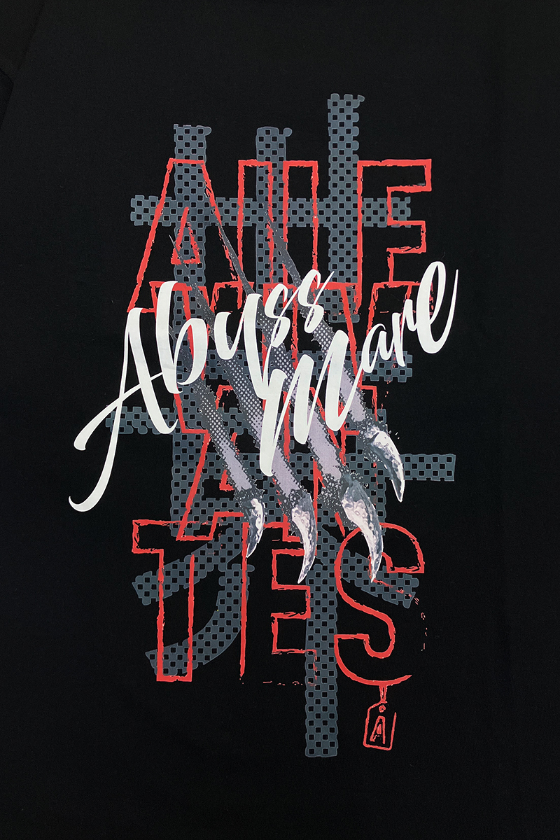 Abyssmareのロゴとタイポグラフィを組み合わせキャラクターの鋭さとスピード感を表現。