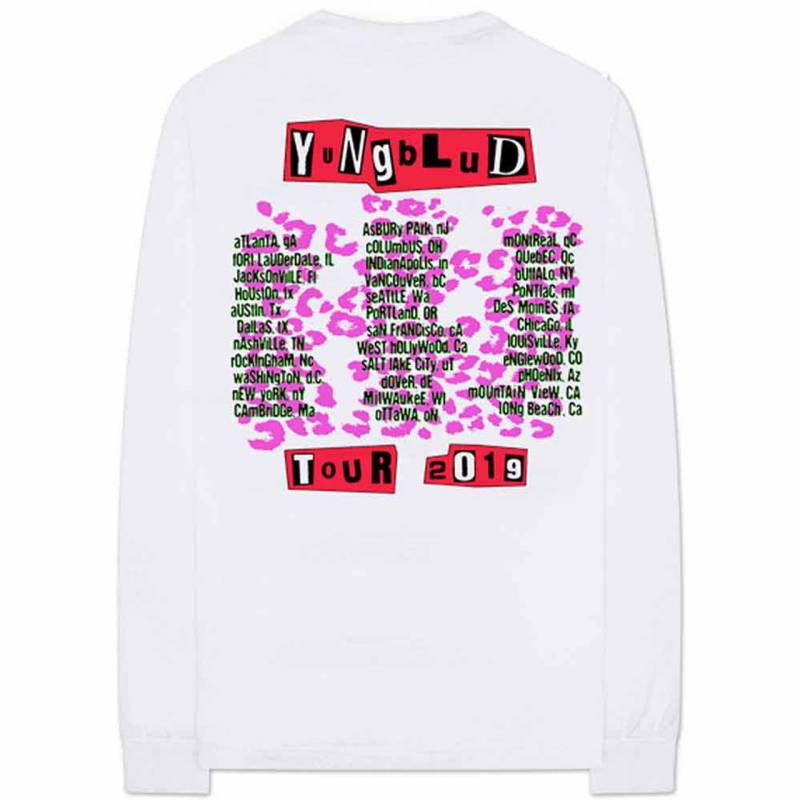 【予約商品】YUNGBLUD Unisex Long Sleeve バンドTシャツ: Tour (White) (Back & Sleeve Print)