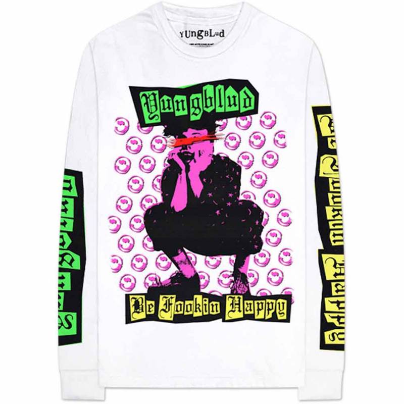 【予約商品】YUNGBLUD Unisex Long Sleeve バンドTシャツ: Punker (White) (Back & Sleeve Print)