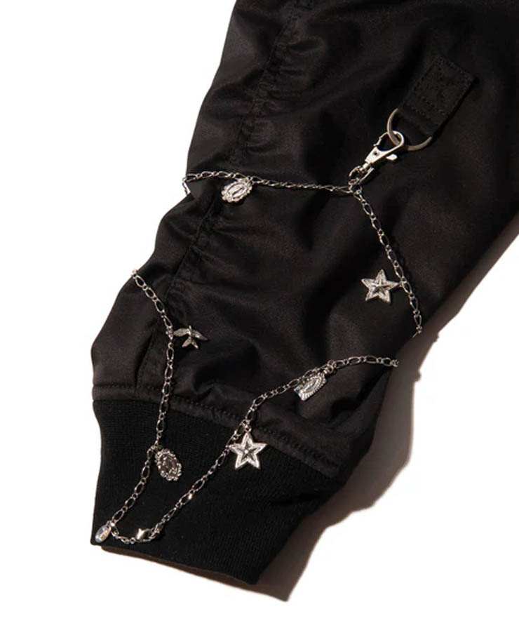 幸運を象徴するモチーフがコーディネートのプラスワンとなるBlow Charm Chain Strap。スターやウィング、クロスなどを散りばめたチェーンは動きあるスタイリングアレンジを提案する今季の“Blow”シリーズに付属されているタブやベルトループにナスカンで装着可能。揺れるチャームが動きを加えてくれるこちらはネックレスとしても着用でき、2WAYでお楽しみいただけます。