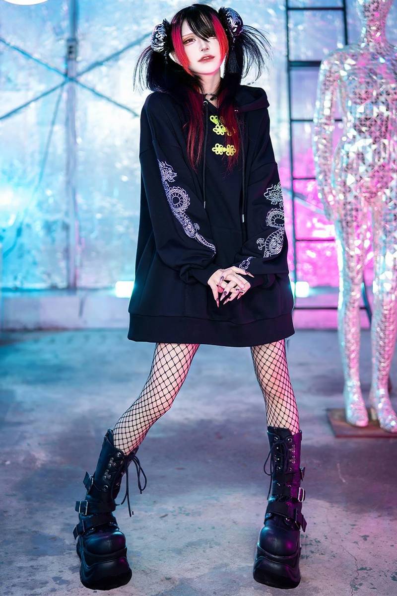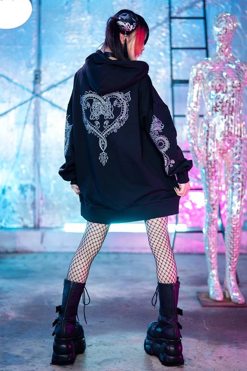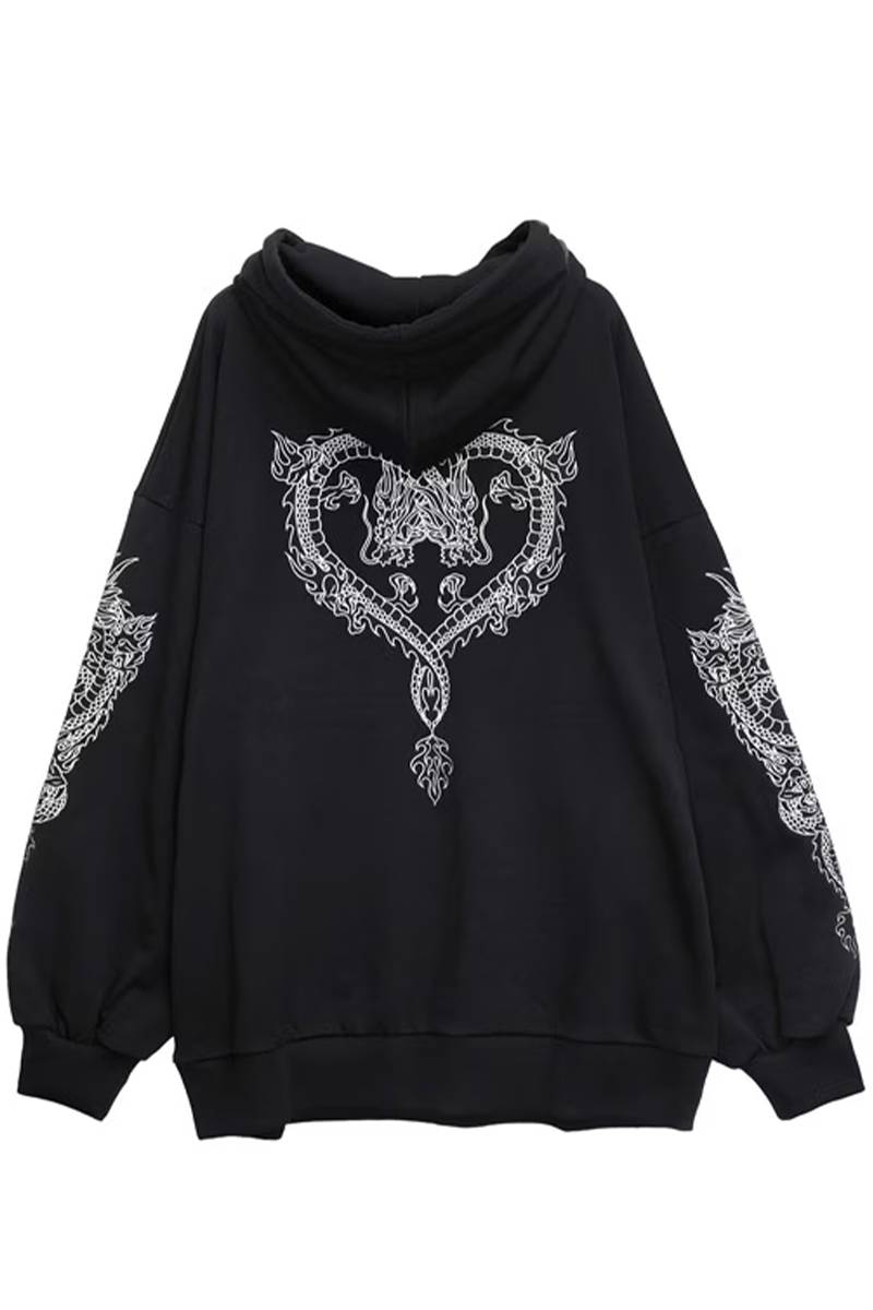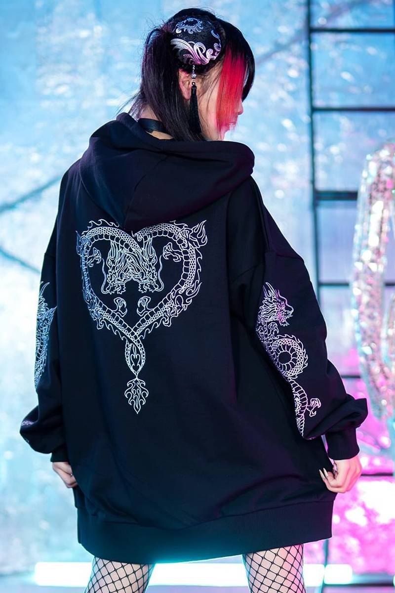 両袖に昇る龍、背中にはハートをかたどった二匹のドラゴンが舞うオール刺繍で大迫力のチャイナパーカーが登場!