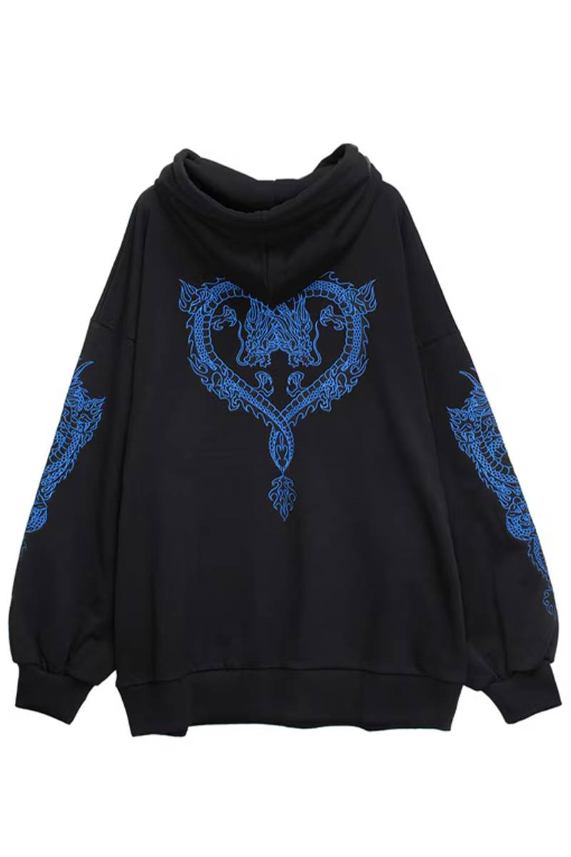両袖に昇る龍、背中にはハートをかたどった二匹のドラゴンが舞うオール刺繍で大迫力のチャイナパーカーが登場!