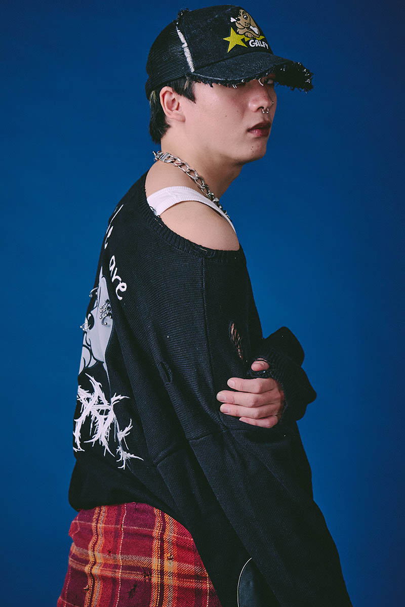 【予約商品】GALFY(ガルフィー) バチバチピアスニット - Black
