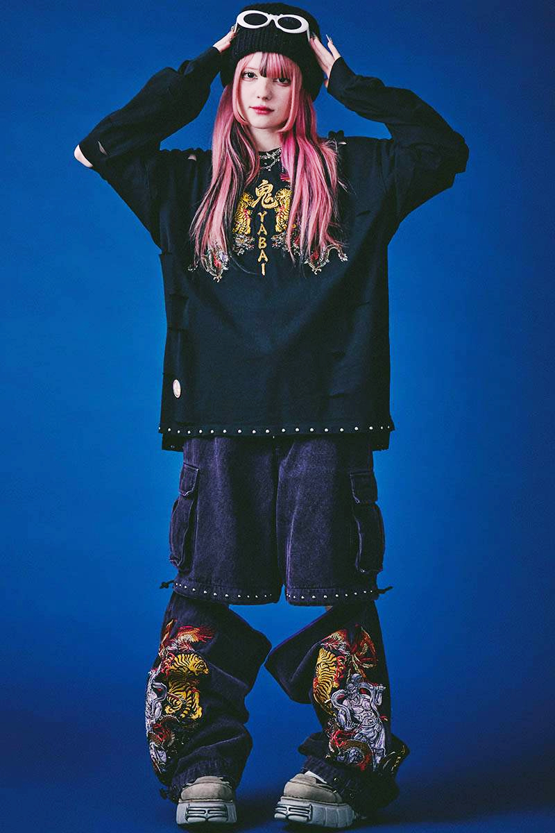 GALFY (ガルフィー) 鬼YABAIデニムカーゴ - Purple