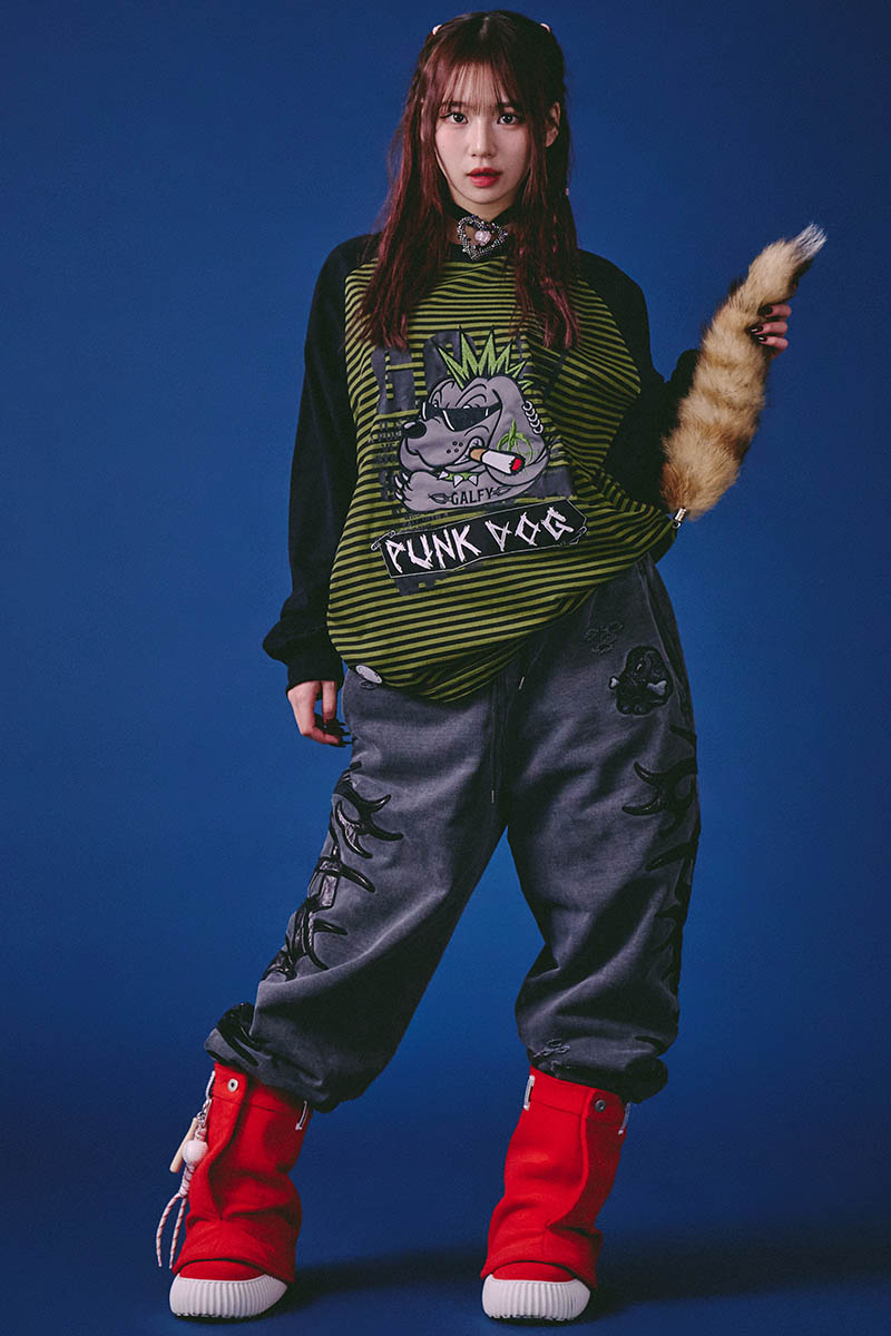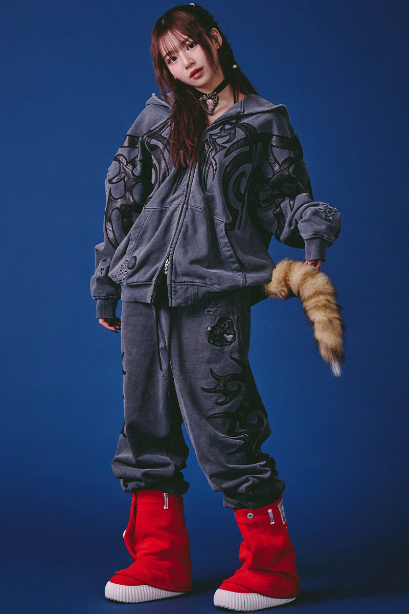 【予約商品】GALFY (ガルフィー) 汚れ部族スウェットパンツ - Ink Black