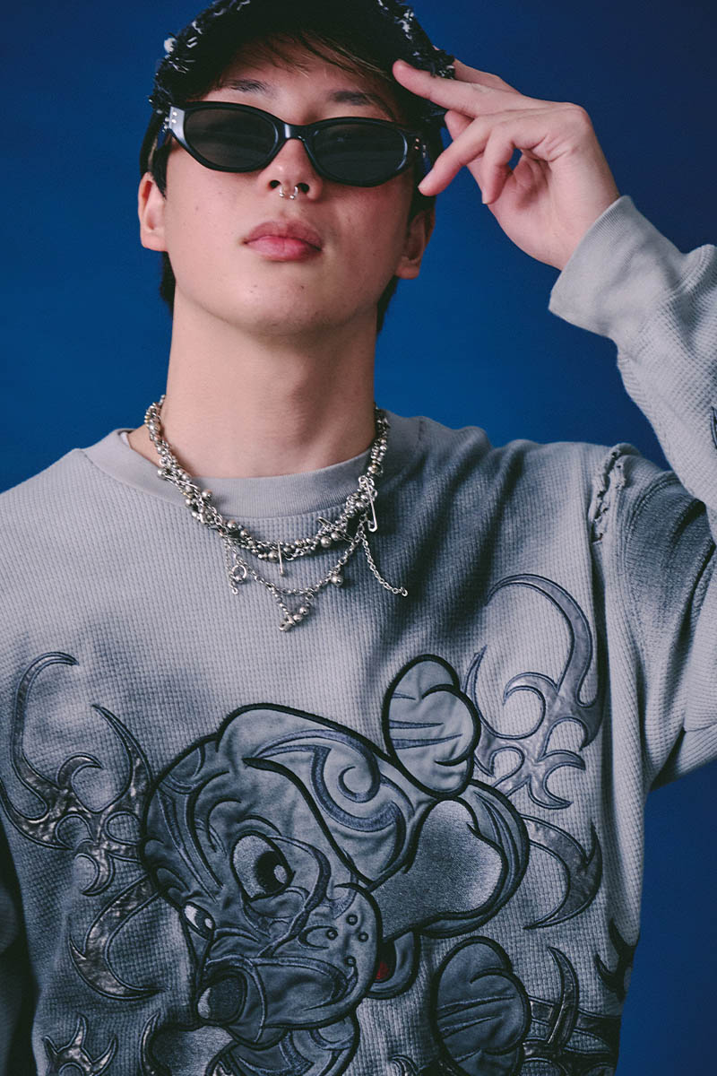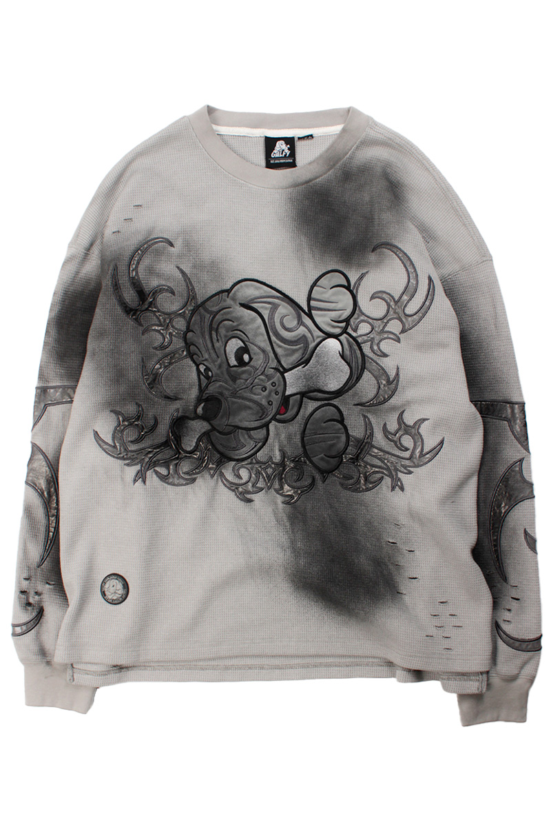 【予約商品】GALFY (ガルフィー) 汚れ部族ワッフルロンTEE - Gray