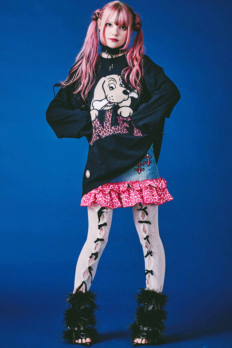 GALFY (ガルフィー) ばーばの切り貼りリメイクロンTEE - Black