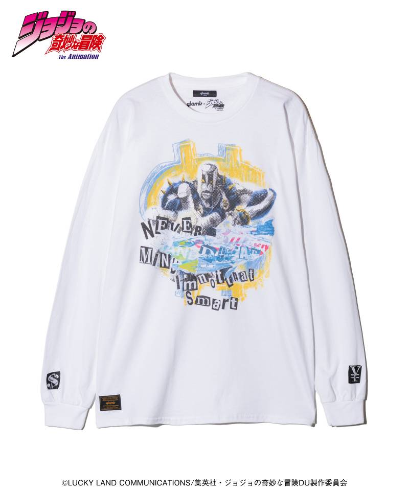 アニメ『ジョジョの奇妙な冒険 ダイヤモンドは砕けない』とglambが三度目となるコラボレーションを発表。虹村億泰のスタンド「ザ・ハンド」をロングスリーブTシャツに描き上げたThe Hand Cutsew。