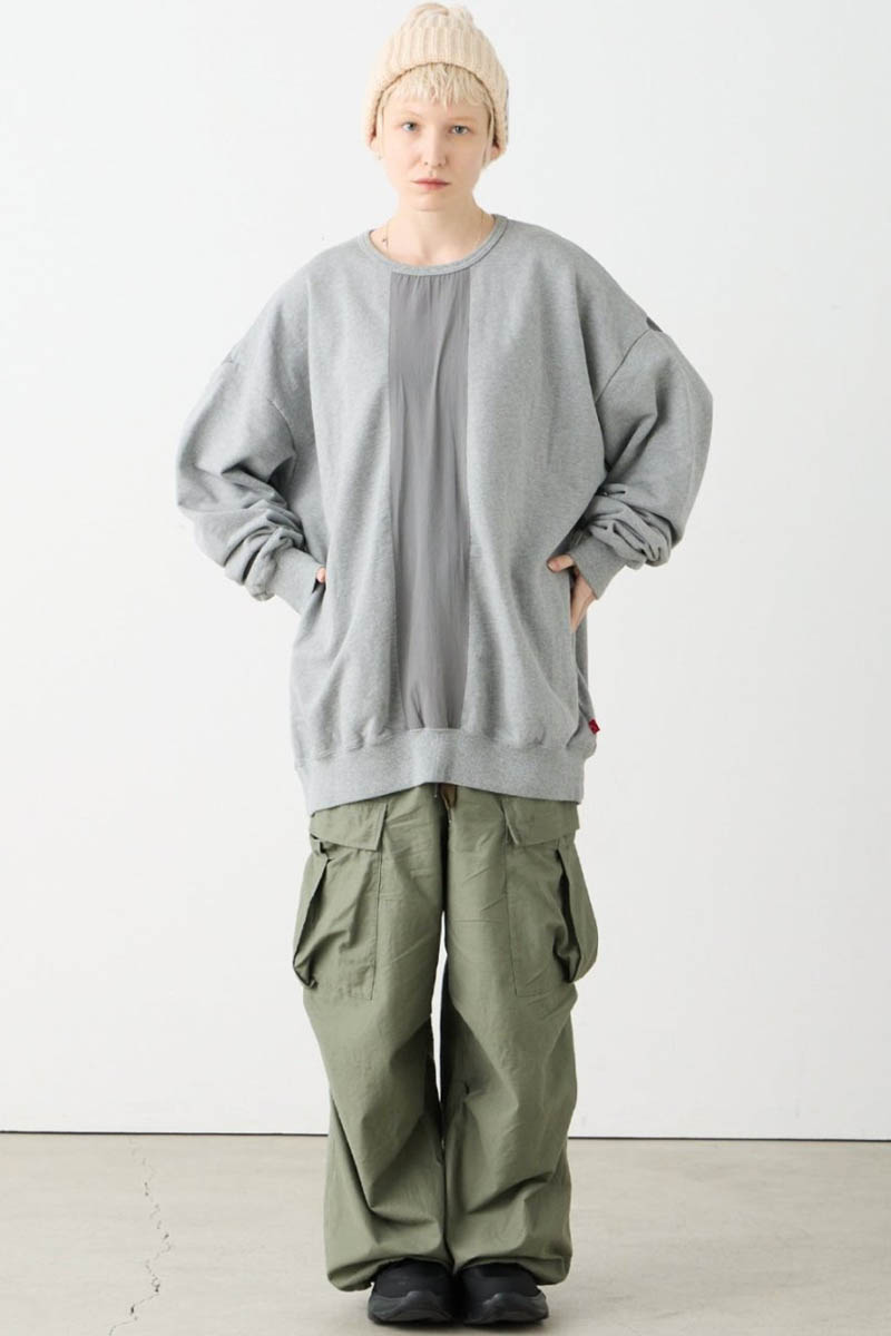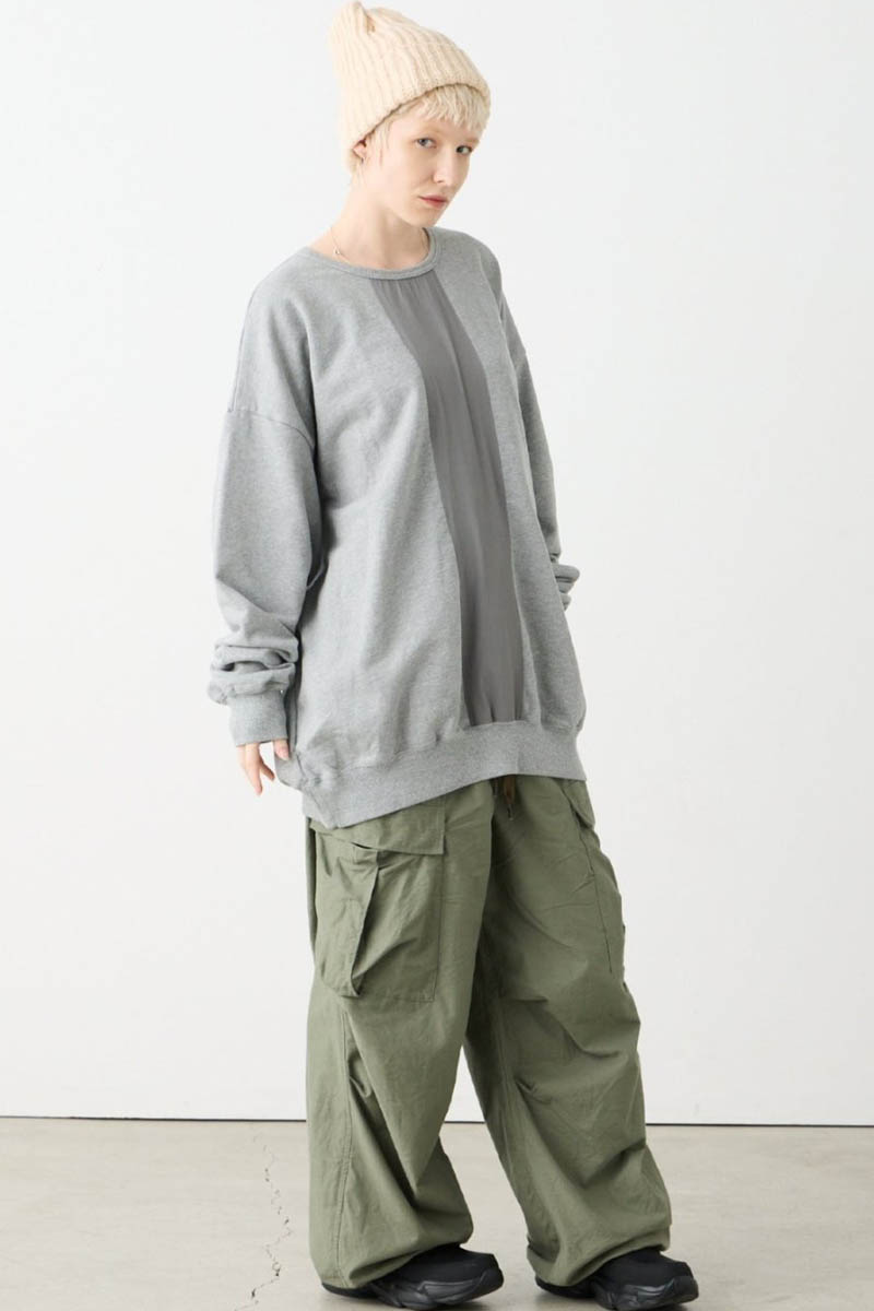 同系色のナイロンを持ちいて切り替えしデザインを施した一着。