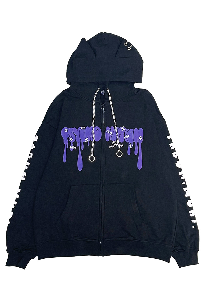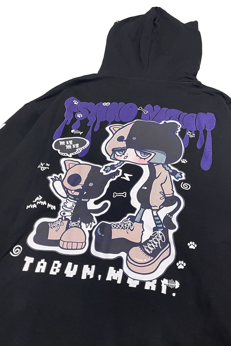 PSYCHO NATION(サイコ・ネーション) 木天蓼にゃん子ZIP・パーカー - Black