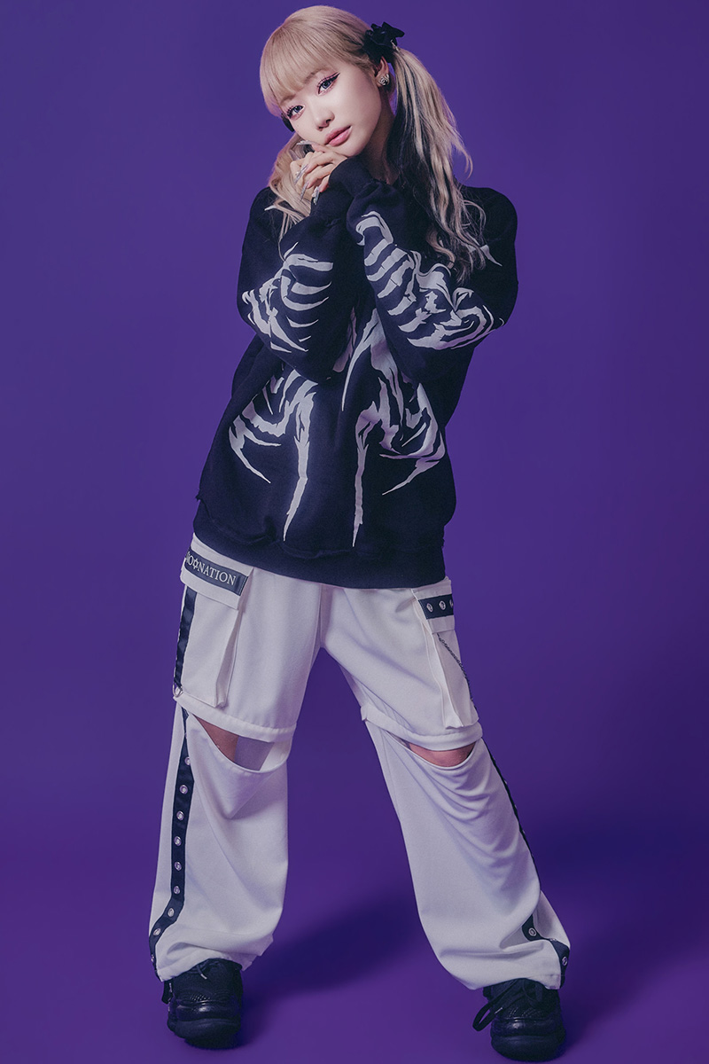大胆なボーン・モチーフを全面にあしらった、インパクト抜群のスウェット・トレーナーが登場。