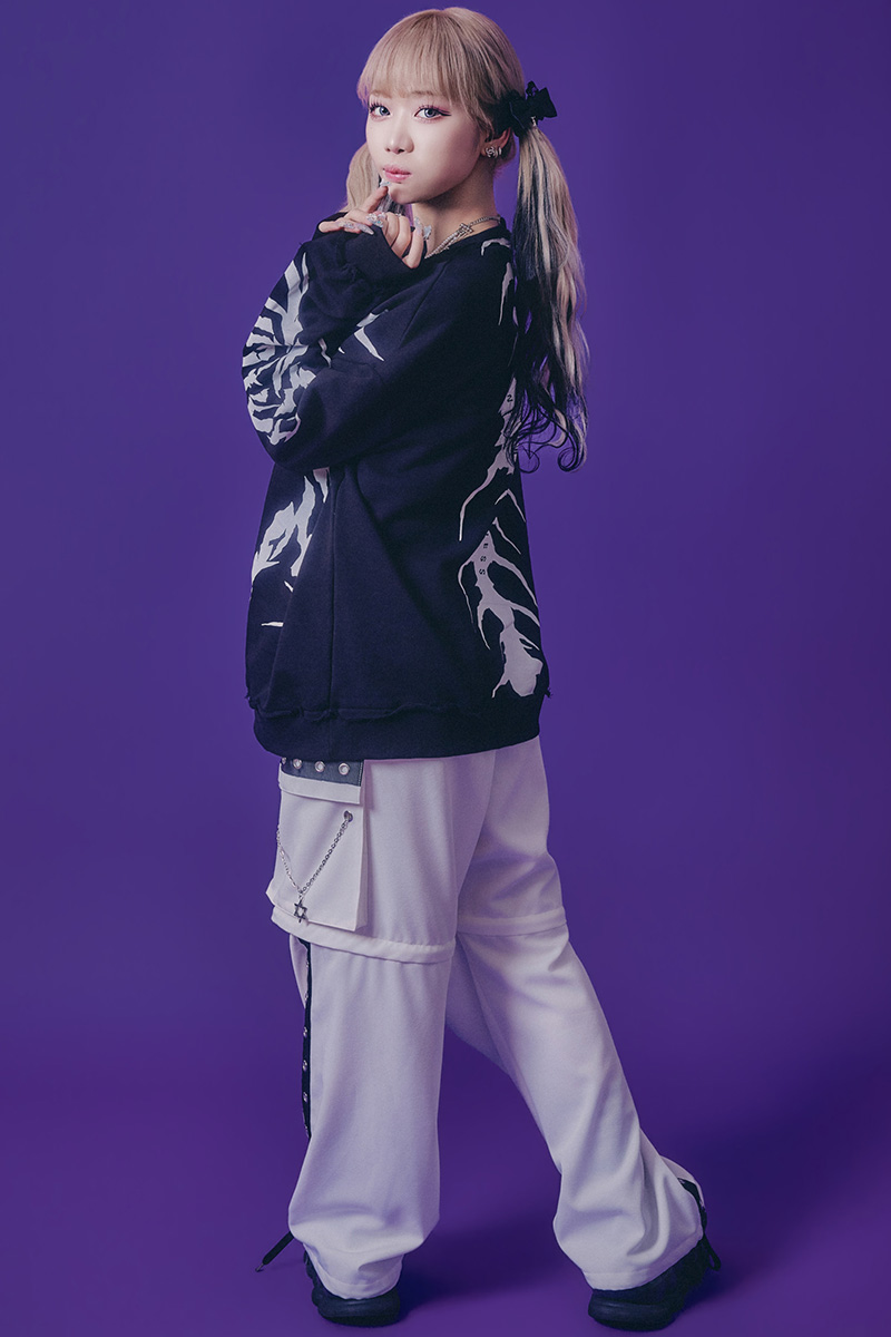 白黒のコントラストが際立ち、ストリート、ダーク・ファッション、モード・スタイルとの相性も抜群。
