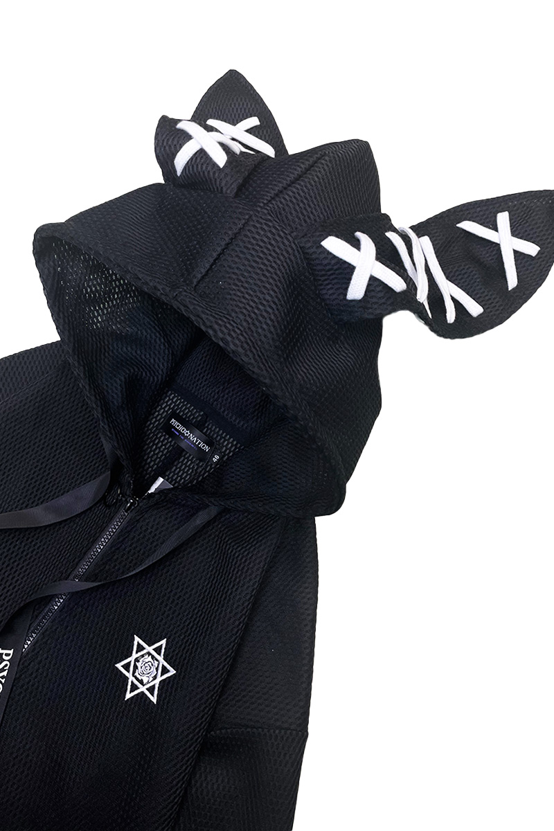 PSYCHO NATION(サイコ・ネーション) メッシュうさ耳ZIP・パーカー - Black