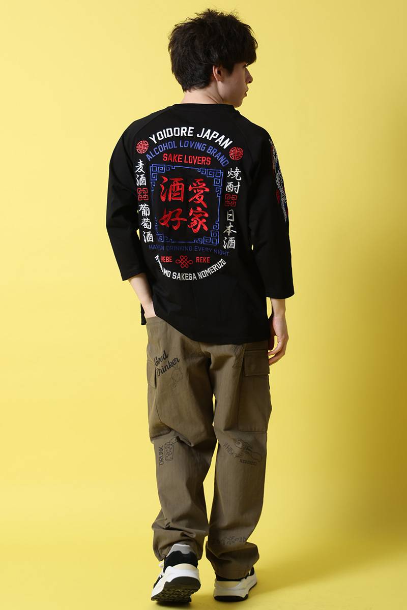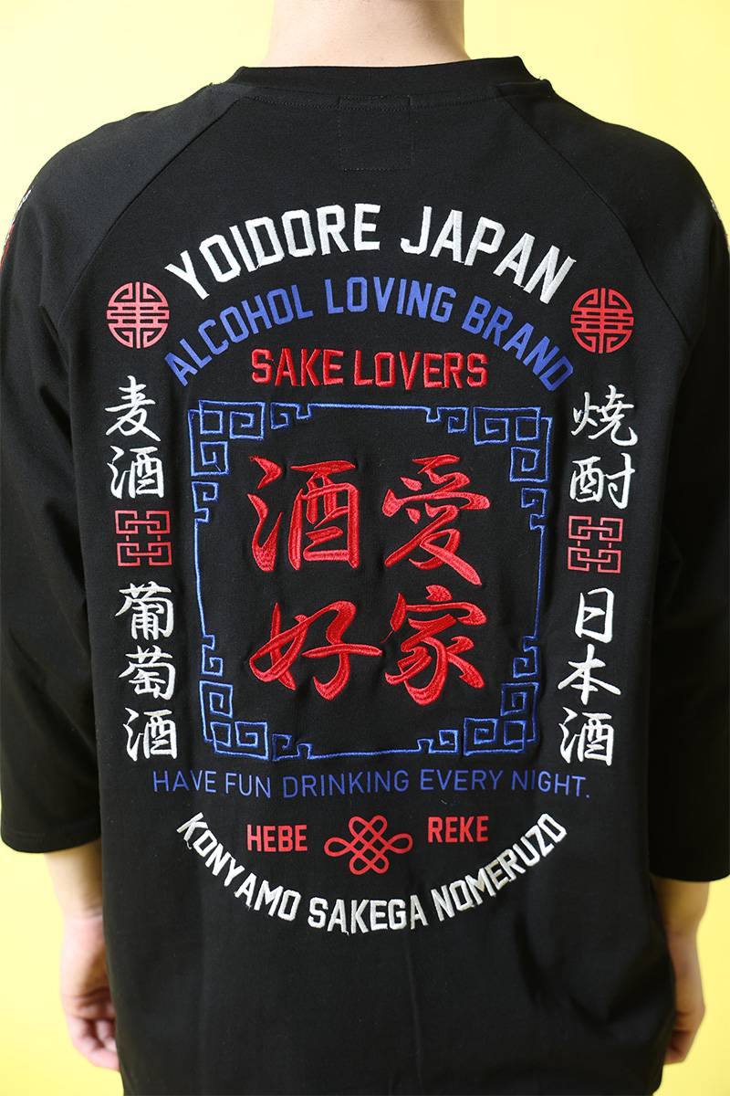YOIDORE (ヨイドレ) 酒愛好家ラグラン 7分Tee - Black