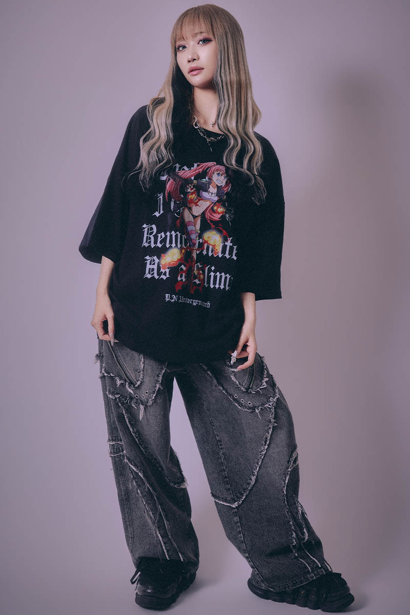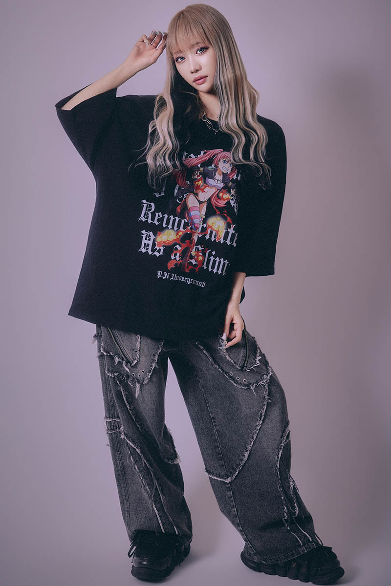 転生したらスライムだった件× P.N UNDERGROUND ミリム・ダメージTEE - Black