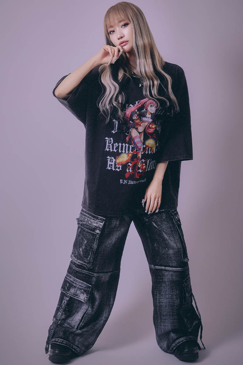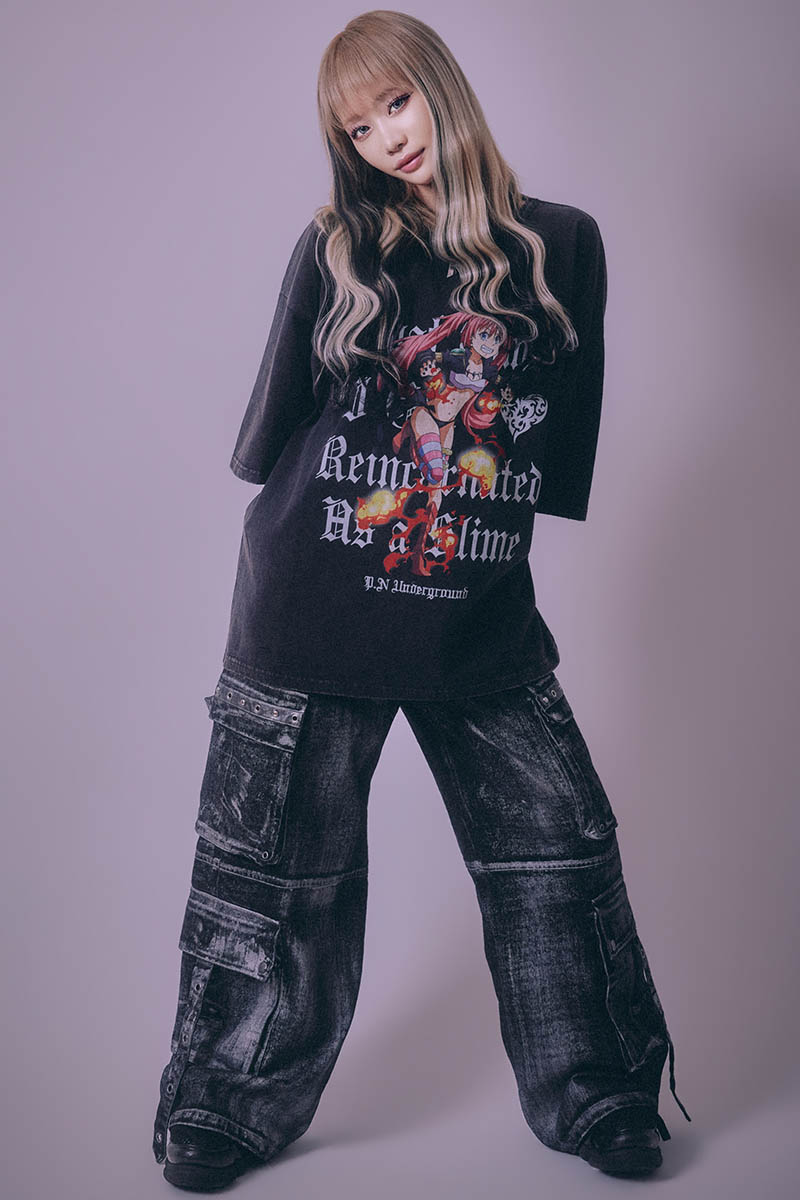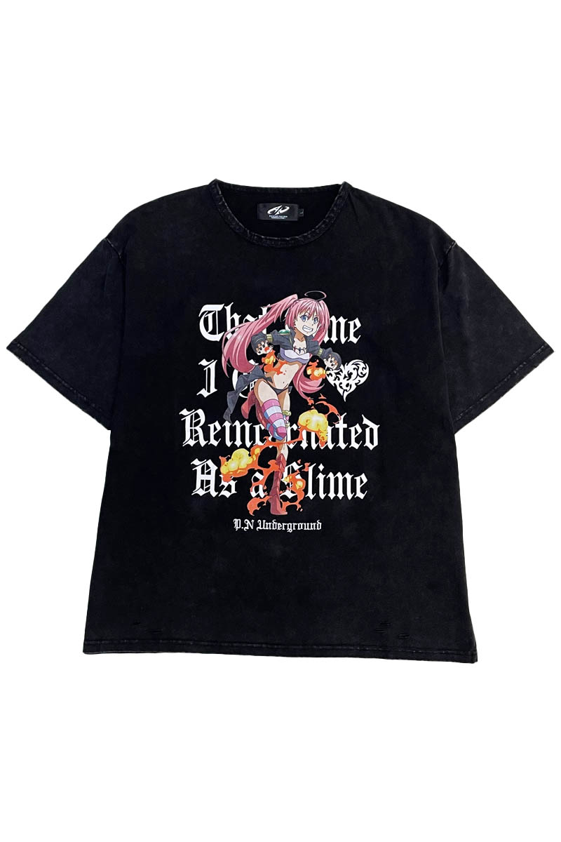 転生したらスライムだった件× P.N UNDERGROUND ミリム・ダメージTEE - Pigment Gray