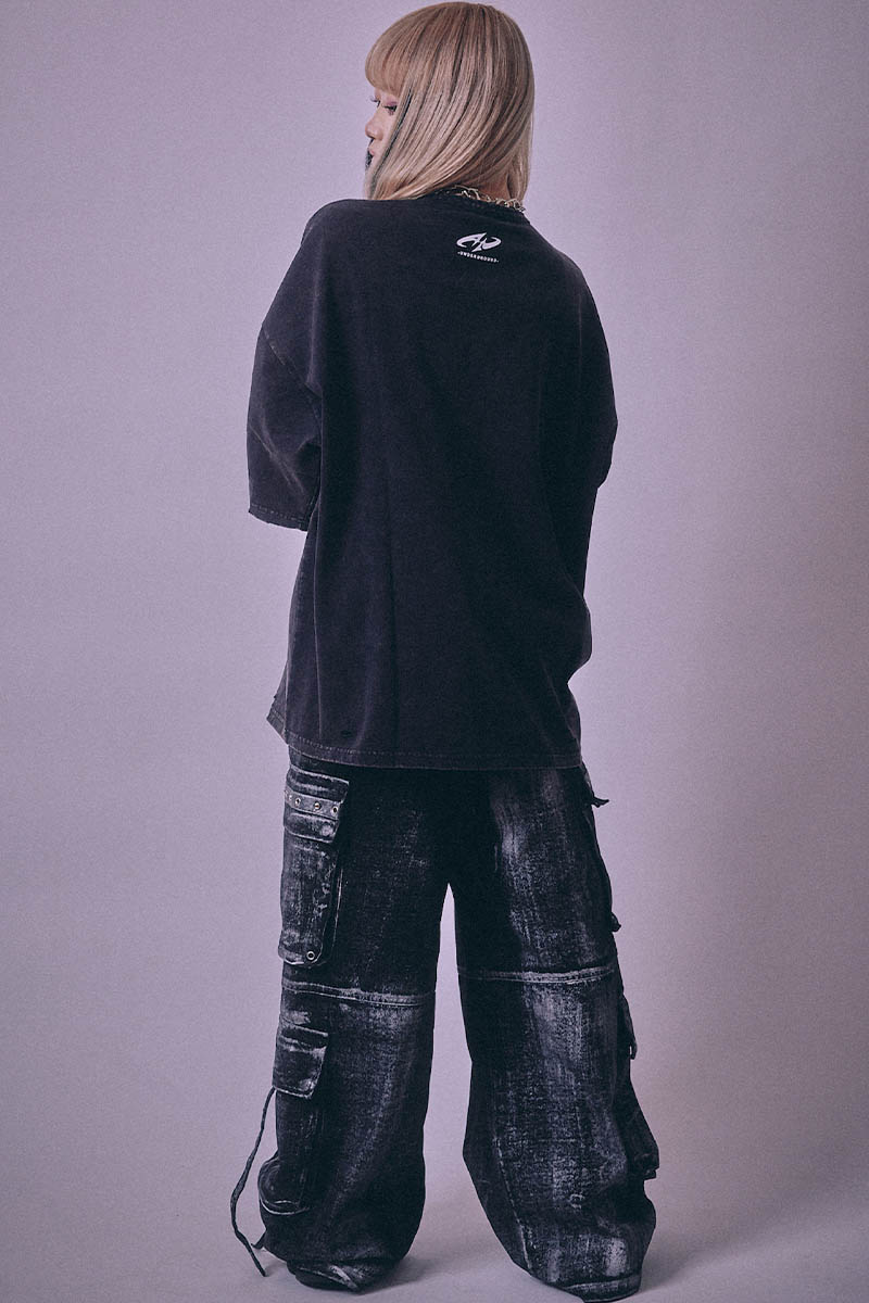 フロントには躍動感あふれるキャラクター・プリントと、ゴシック調ロゴを大胆に配置し、存在感抜群のデザインに仕上げました。