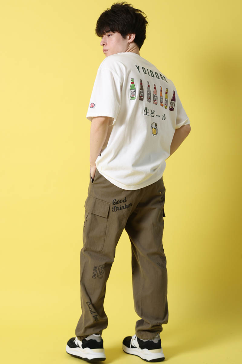 バックには"YOIDORE"のロゴと、カラフルなビール・ボトルを並べたグラフィック、さらに"生ビール"の文字とジョッキ・モチーフを加え、ユーモアとストーリー性を感じさせるデザインに仕上げています。