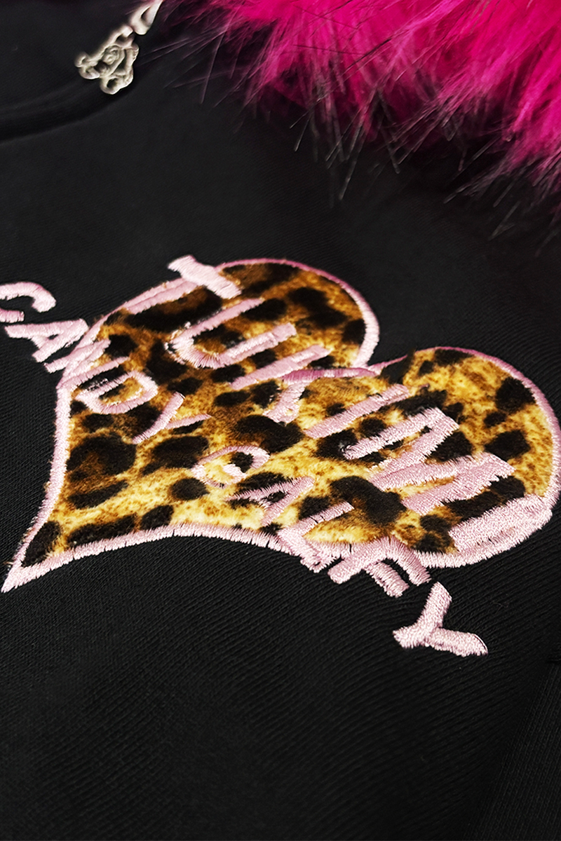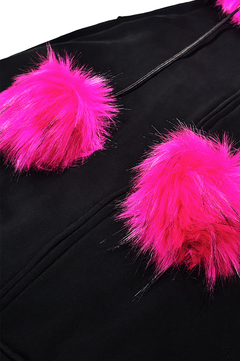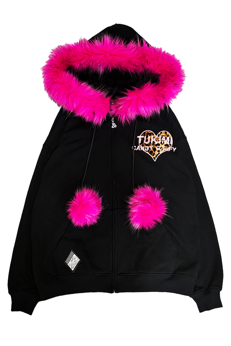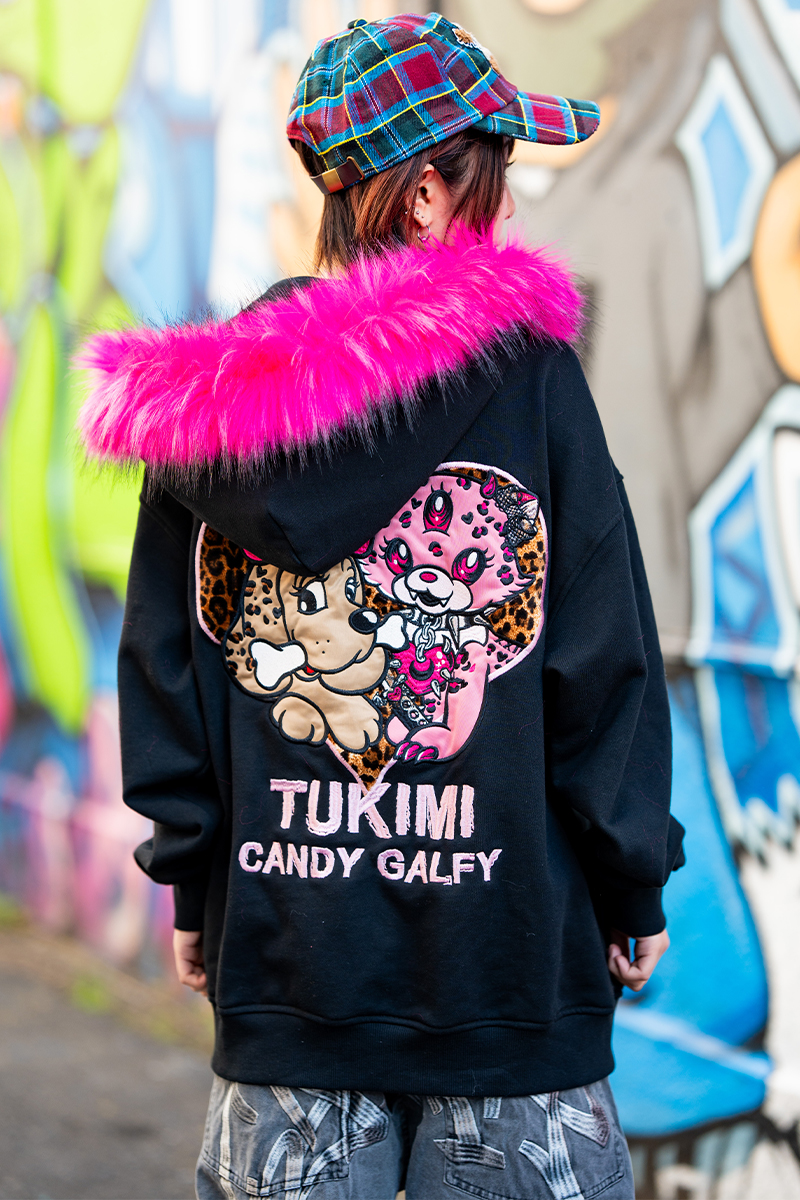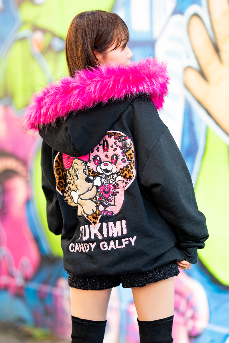 つきみ×GALFY×GEKIROCK CLOTHINGコラボ 一生仲仔♡ファー付パーカー - Black