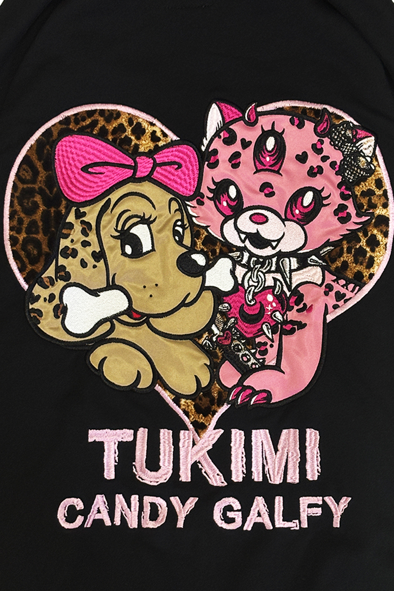 つきみのキャラクター"ぎゃるぎゃんちゃん"と、CANDY GALFYのワンちゃんが一生仲仔♡(いっしょうなかよし)しているデザインをバックに大胆に配置。