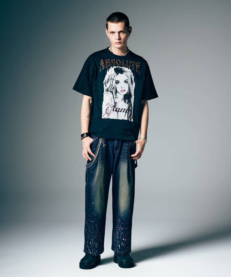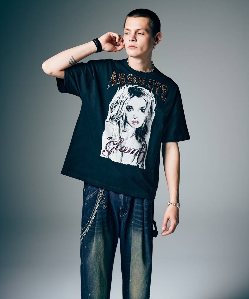 聴く者を圧倒するカリスマティックなアーティスト像をグラフィックに描き出すDiva T-Shirt。フロントにシュレッダーにかけたような効果を持たせて配したのは歌姫のポートレート。モノトーンの色使いでシンボリックに描きながら、唇とglambロゴのスターモチーフにはラメプリントを、