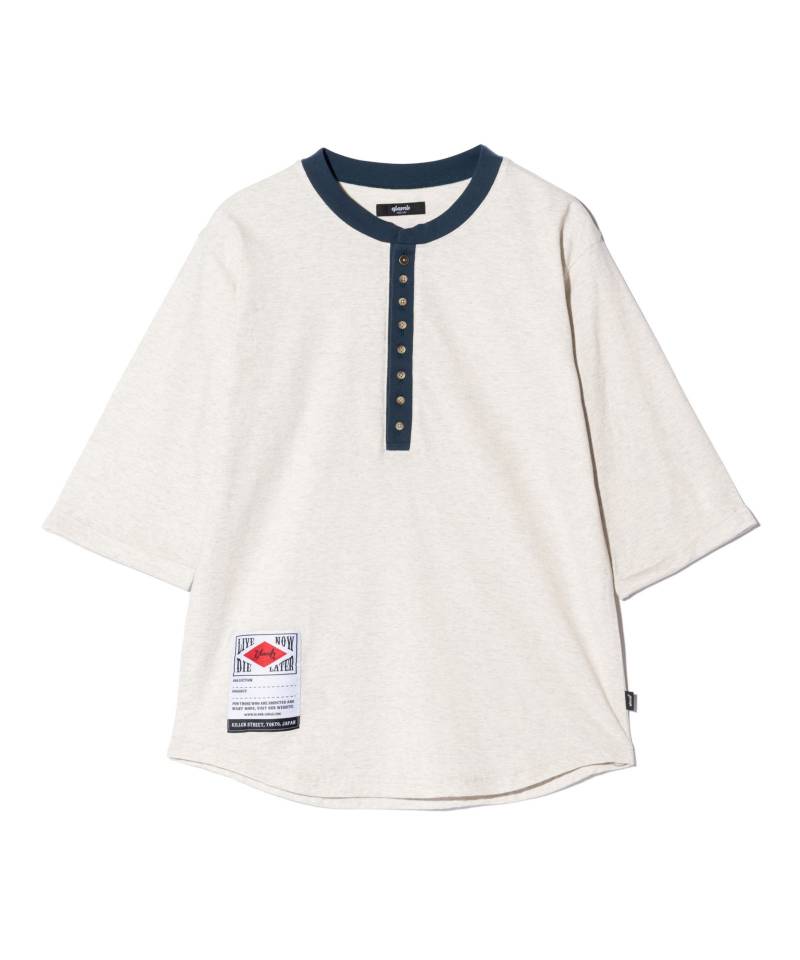 glamb秋冬のカットソーラインで人気を博してきたAugusta Cutsewを軽やかな五分袖でリリース。一番上のみ色違いとなる8つボタンを備えた深めのヘンリーネックはシリーズを踏襲。ボタンを開閉することでお好みのニュアンスを付けてお楽しみいただけます。前後差を付けたラウンドヘムに配したのは今季初登場となるスペックタグ。オールドスクールなデザインであしらったミリタリーディテールがタフなムードを演出します。テキスタイルに使用したのは品のある光沢としなやかな肌触りを備える、MADE IN JAPANのクオリティある40/2コーマ天竺。シルエットはルーズフィットにまとめており、合わせるボトムスを問わずスタイリングに抜け感をもたらします。
