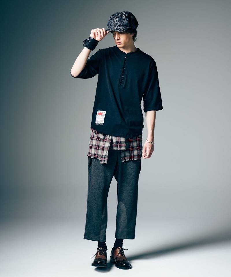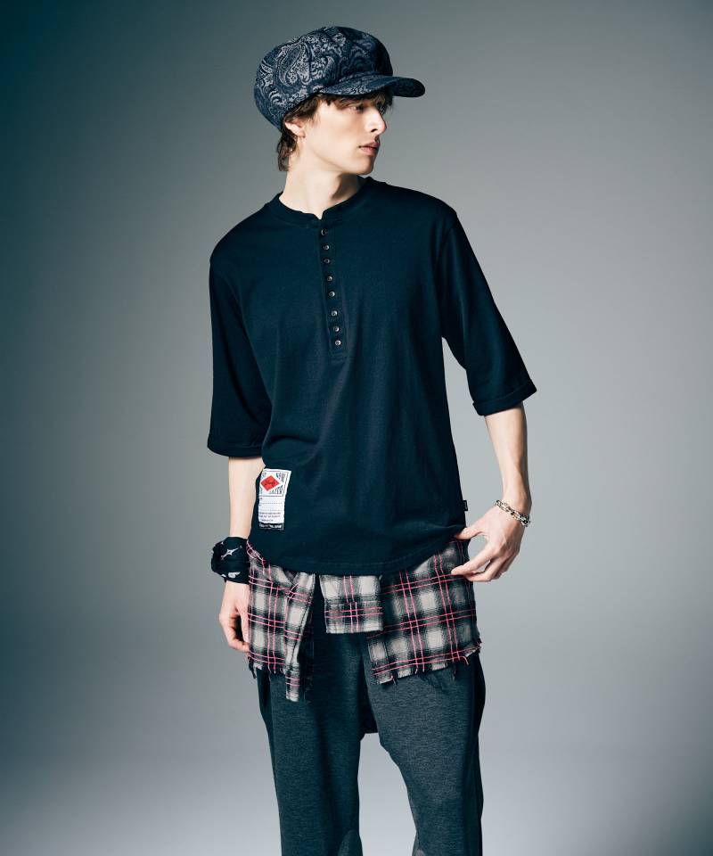 glamb秋冬のカットソーラインで人気を博してきたAugusta Cutsewを軽やかな五分袖でリリース。一番上のみ色違いとなる8つボタンを備えた深めのヘンリーネックはシリーズを踏襲。ボタンを開閉することでお好みのニュアンスを付けてお楽しみいただけます。前後差を付けたラウンドヘムに配したのは今季初登場となるスペックタグ。オールドスクールなデザインであしらったミリタリーディテールがタフなムードを演出します。テキスタイルに使用したのは品のある光沢としなやかな肌触りを備える、MADE IN JAPANのクオリティある40/2コーマ天竺。シルエットはルーズフィットにまとめており、合わせるボトムスを問わずスタイリングに抜け感をもたらします。