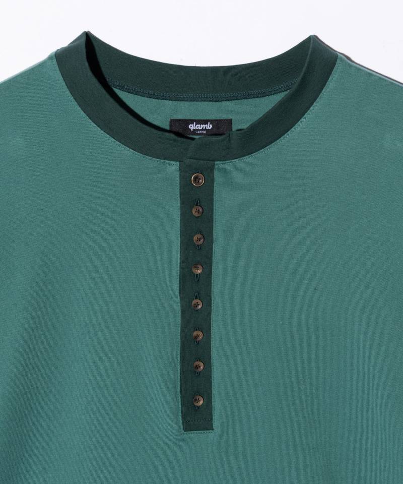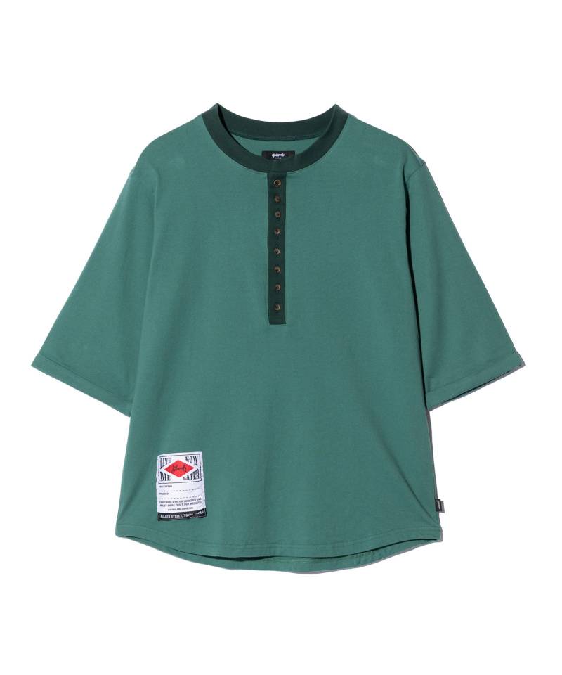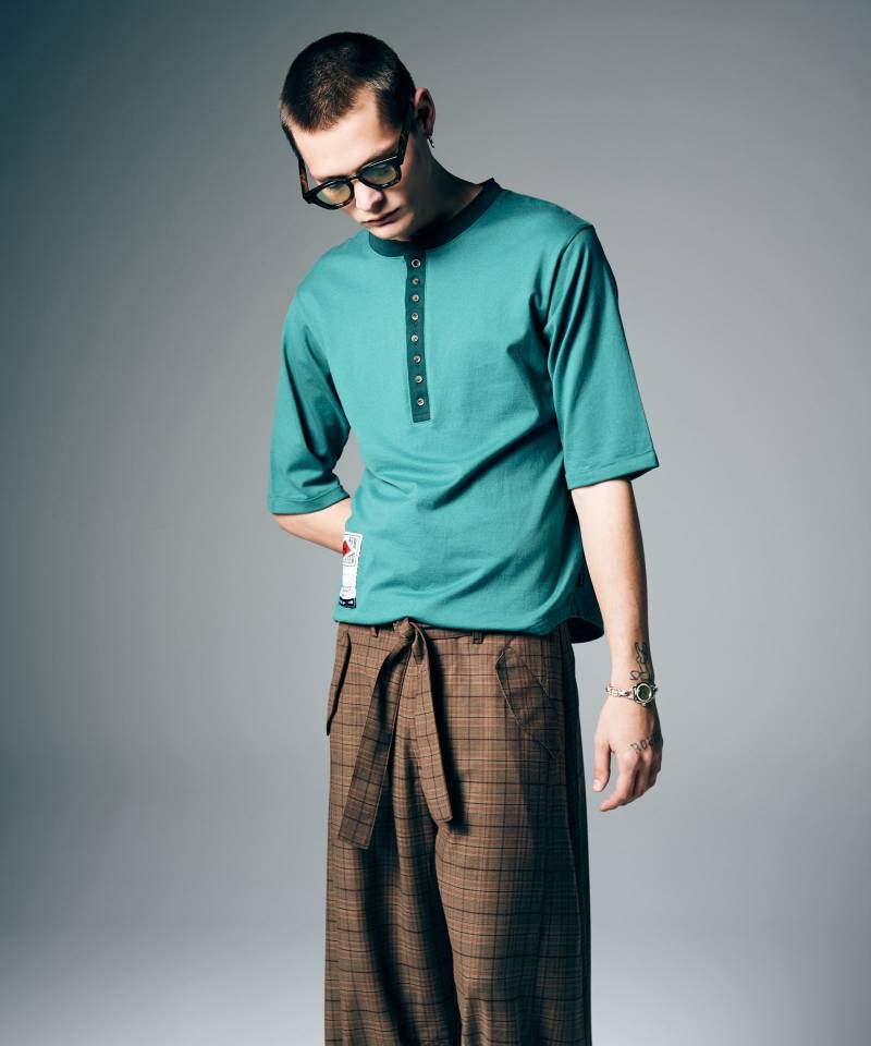 glamb秋冬のカットソーラインで人気を博してきたAugusta Cutsewを軽やかな五分袖でリリース。一番上のみ色違いとなる8つボタンを備えた深めのヘンリーネックはシリーズを踏襲。ボタンを開閉することでお好みのニュアンスを付けてお楽しみいただけます。前後差を付けたラウンドヘムに配したのは今季初登場となるスペックタグ。オールドスクールなデザインであしらったミリタリーディテールがタフなムードを演出します。テキスタイルに使用したのは品のある光沢としなやかな肌触りを備える、MADE IN JAPANのクオリティある40/2コーマ天竺。シルエットはルーズフィットにまとめており、合わせるボトムスを問わずスタイリングに抜け感をもたらします。