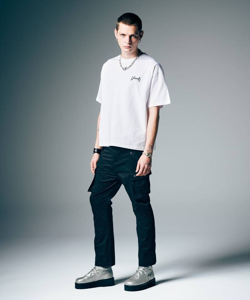 夏のストリートスタイルに絶好のロゴTシャツにボタニカルなアレンジを施したFloral Spin Logo T-Shirt。フロントはワンポイントの小ぶりなロゴ使いながら、存在感をもたらすのはバックスタイル。色鮮やかなフラワーモチーフに、glambスピンロゴを乗せてボディ前後にコントラストを持たせました。シルエットは程良いドロップショルダーを掛け合わせたルーズなボックスシルエット。テキスタイルにはコットン100%のコンパクトコーマ糸を使用、毛羽立ちの少ない素材が滑らかで上質な着用感をもたらします。