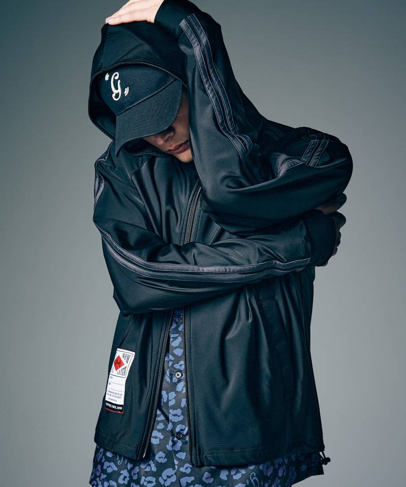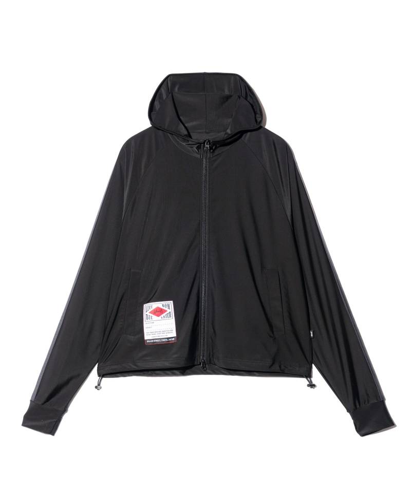 ストリートの定番となるラインジャージにサーフのエッセンスを掛け合わせたRash Guard Hood Jersey。テキスタイルに用いたのは速乾性と軽量性を兼ね備えるエステルテキスタイル。サマーシーズンのラッシュガードとしても絶好の素材感となっております。スポーティなラインをあしらったボディはフード付きのハイネックを備えており、首周りにルーズなドレープを描出。11分丈の袖口にはサムホールを、サイドにはドローコードを、さらに前合わせはダブルジップ仕様となっており自在なスタイリングアレンジを叶えます。ポケット内にはジップを設けて、車の鍵など貴重品が落ちないよう工夫を。裾には今季登場となるスペックタグを配してミリタリーライクなアクセントを添えました。シルエットはルーズな身幅にショート丈を掛け合わせたものとなっており、今らしく着こなしていただけます。