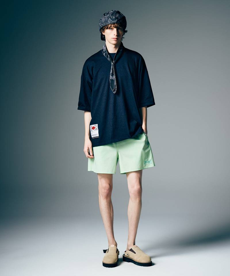 シンプルなデザイン性だからこそ国内ファクトリーで素材と工程にこだわって仕上げたQuick Dry T-Shirt。一見プレーンながら、ロールアップをステッチで留めた袖口とスリットを備えた前後差ある裾がスタイルある佇まいを演出。ミリタリータグにオールドスクールなデザインとブランドからの野心的なメッセージを乗せたスペックタグをあしらい、タフなムードを持たせました。テキスタイルに用いたのは表面にコットン、裏面に吸水速乾やUVカットなど高機能素材として知られるCOOLMAX®を用いた薄手生地。ビッグシルエットに設定しており、ボトムスを選ばず合わせていただけます。