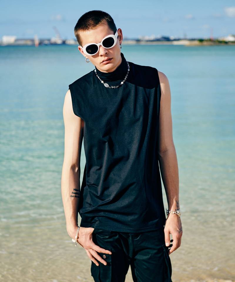 夏のレイヤードスタイルに多彩な機能性とインテリジェンスあるムードを乗せるTech High Neck Tank Top。テキスタイルには紫外線をブロックするUPF50+機能に加え、吸水速乾と接触冷感も備えた高機能素材を使用しており快適な着用感。首元のハイネックと着丈は長めに設定、お手持ちのシャツやアウターのインナーに用いるだけでバランスの取れたトップスレイヤードを形作ります。
