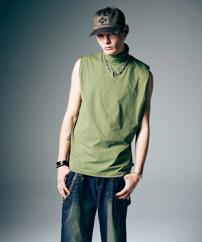 【予約商品】glamb(グラム) Tech High Neck Tank Top / テックメッシュネックタンクトップ - Khaki