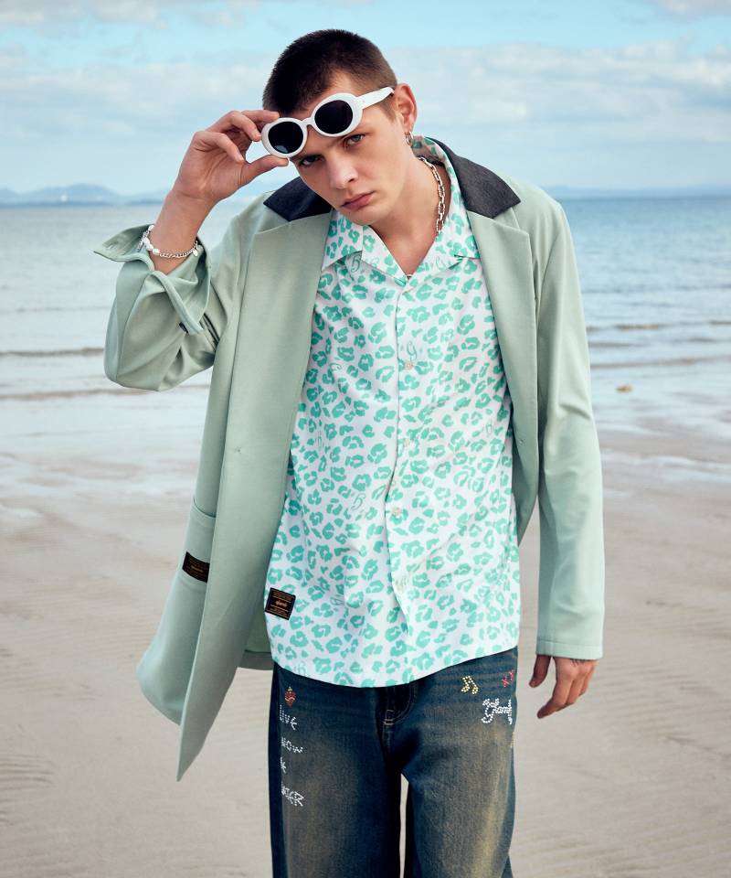 トラッドなコートシルエットを軽やかな素材使いによってストリートに提案するChesterfield Shirt。襟にノッチドラペル、バックスタイルにセンターベントをあしらったロングシルエットのボディはチェスターコートを思わせる佇まい。そこにスポーティなジャージ生地をあしらうことでイージーなムードへとカジュアルダウン。腰元のポケットもカジュアルなムードのアウトポケットで配し、フォーマルに傾き過ぎないルーズなムードにまとめています。今季は同生地を使用したWaist Tuck Cropped Pantsをラインナップ。アクティブでスマートな夏のセットアップスタイリングをお楽しみください。