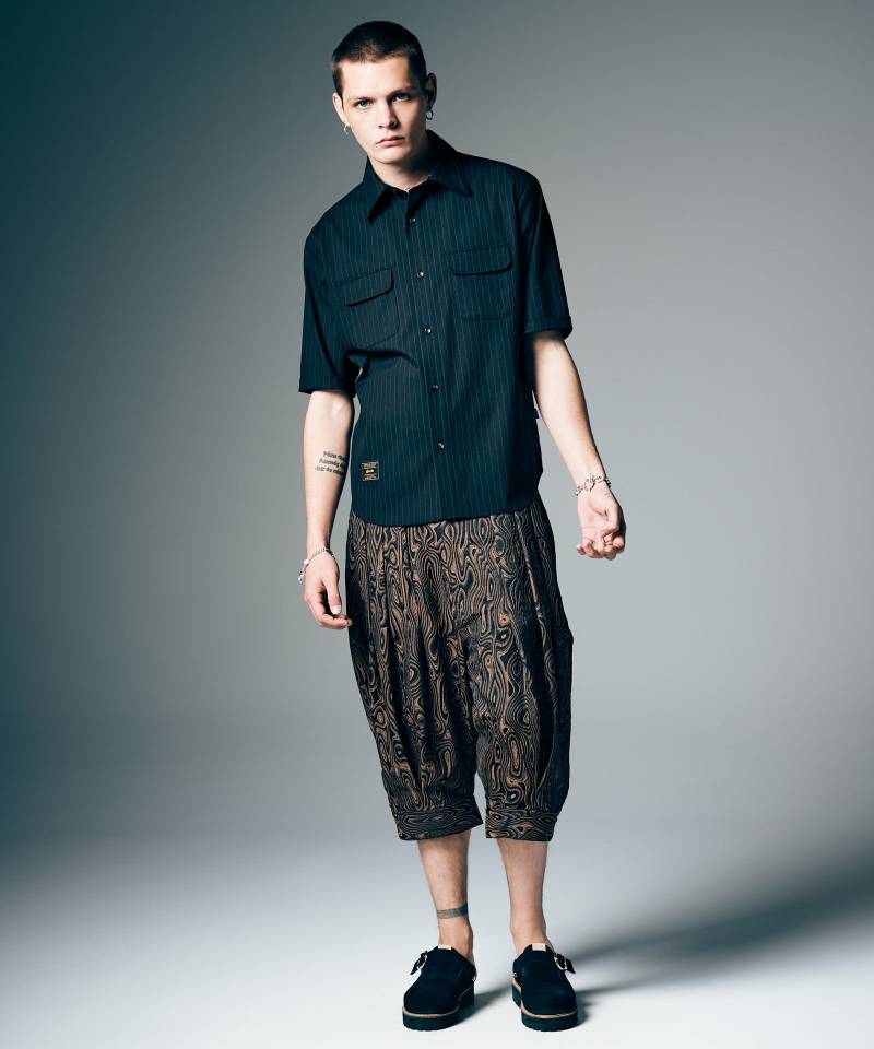 ブランドの余白あるパターンメイキングによってラギッドスタイルのシャツをスマートにリシェイプしたOversize Work Shirt。ストライプ生地を用いたボディは胸の2ポケットや袖口のダブル仕立てがワークテイストを醸し出しながら、その輪郭は非常にワイドな身幅とドロップショルダーを組み合わせたオーバーサイズ。裾はドレスシャツを踏襲したラウンドヘムを組み合わせ、フォーマルとワークの垣根を超えた独自の佇まいにまとめました。