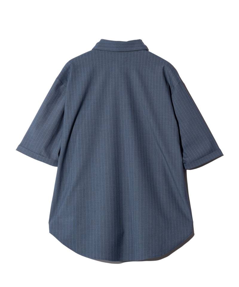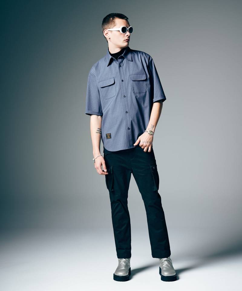 ブランドの余白あるパターンメイキングによってラギッドスタイルのシャツをスマートにリシェイプしたOversize Work Shirt。ストライプ生地を用いたボディは胸の2ポケットや袖口のダブル仕立てがワークテイストを醸し出しながら、その輪郭は非常にワイドな身幅とドロップショルダーを組み合わせたオーバーサイズ。裾はドレスシャツを踏襲したラウンドヘムを組み合わせ、フォーマルとワークの垣根を超えた独自の佇まいにまとめました。