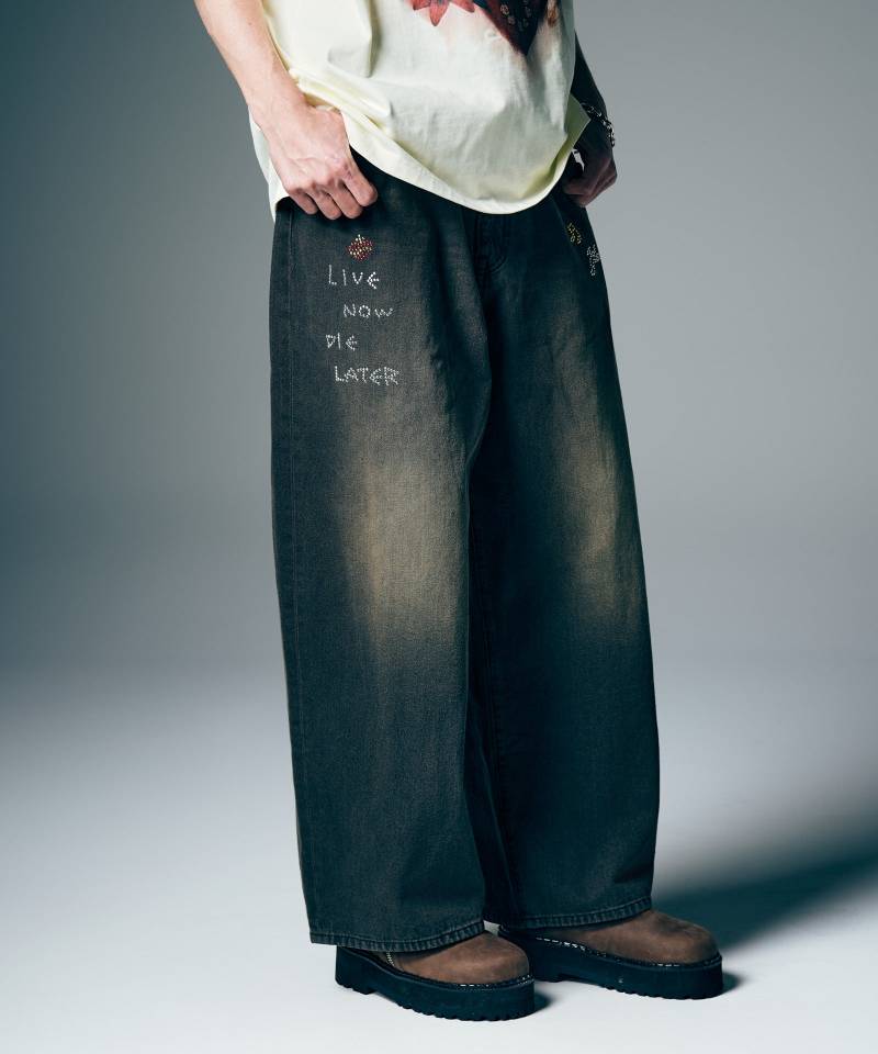 【予約商品】glamb(グラム) Studs Wide Denim / スタッズワイドデニム - Black
