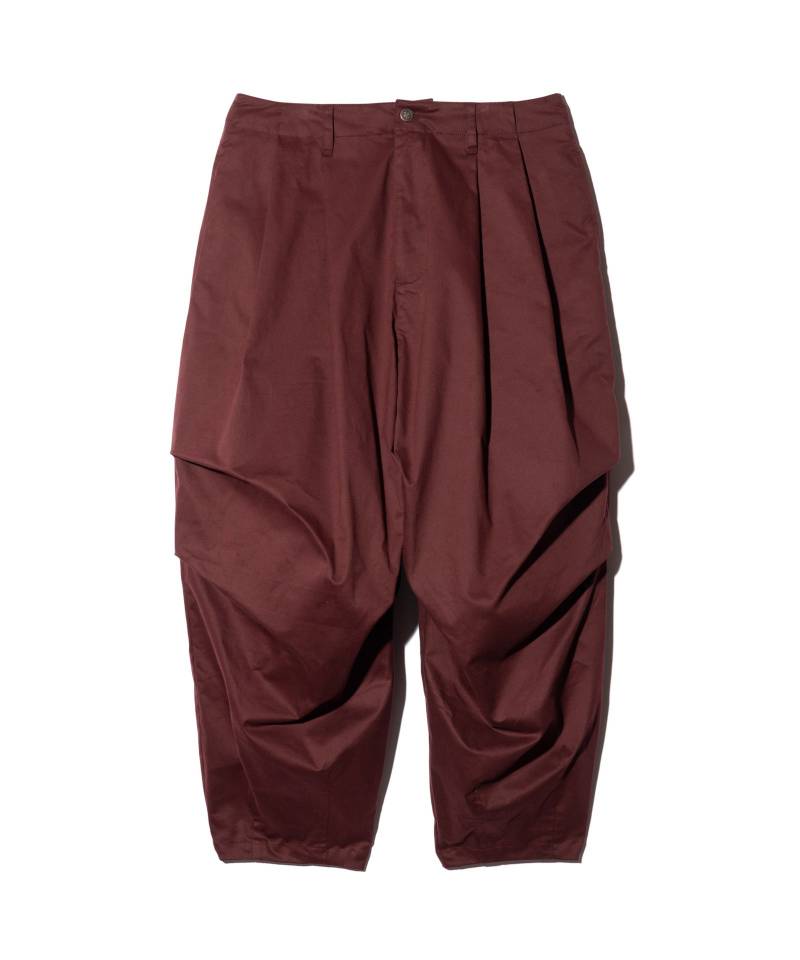 ブランドの得意とする独創的なパターンワークに趣の異なる3色を落とし込み、夏のカラーコーディネートを提案するKnee Tuck Color Pants。ボディは腰元に4タック、膝に2タック、裾にダーツを設けて構築したワイドバルーンシルエット。ボリュームある輪郭ながらテキスタイルにはストレッチ混のライトウェイト生地を使用して軽やかな穿き心地を実現しています。ブランドからの提案を込めたのがカラーコーディネートを提案する3色展開。Blackに加え、リゾートムードを醸し出すWhiteとアンティーク調のWineをラインナップします。
