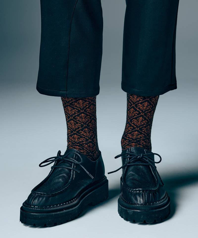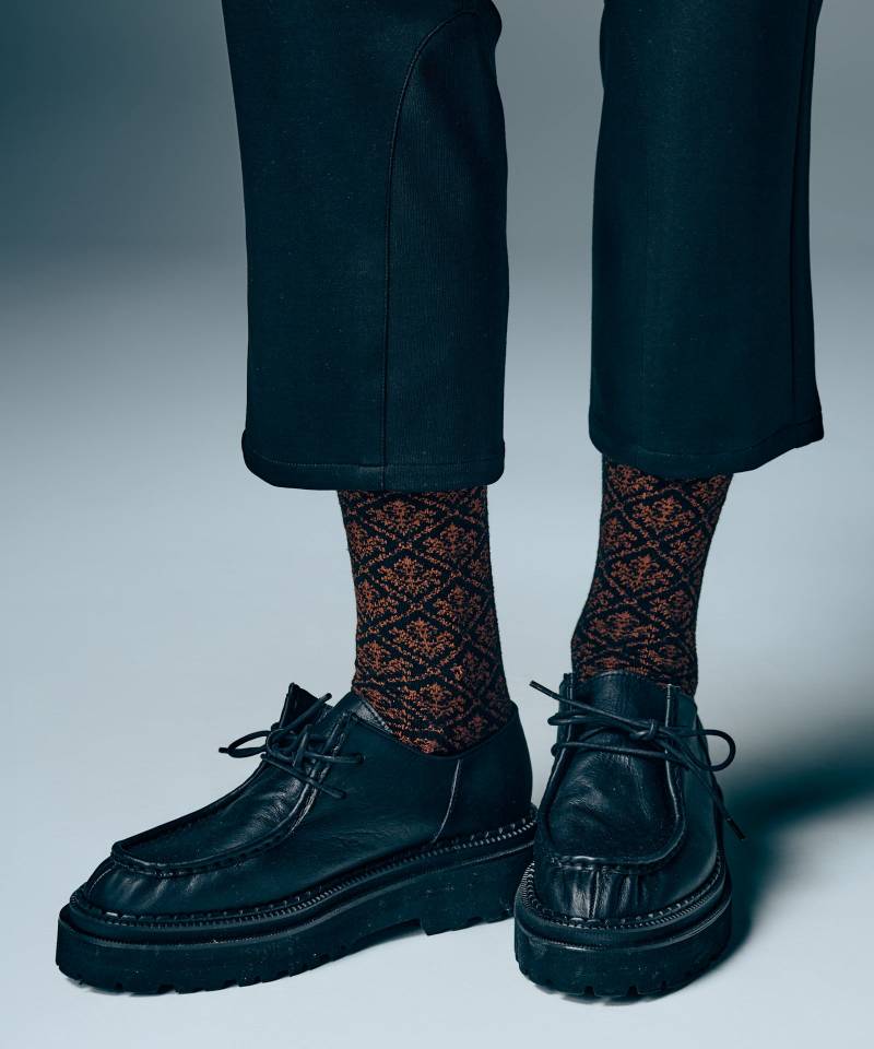 シーズンごとに好評となる3カラーのソックスセットをエレガントな柄使いで提案するBaroque Pattern Socks Set。総柄使いであしらったのは緻密なバロック柄。軽装に傾く夏のスタイリングにglambらしい重厚なニュアンスを加える1足です。つま先にもglambスピンロゴをあしらって靴を脱いだ際にも配慮。テキスタイルは中厚手となっており季節を問わずにご着用いただけます。