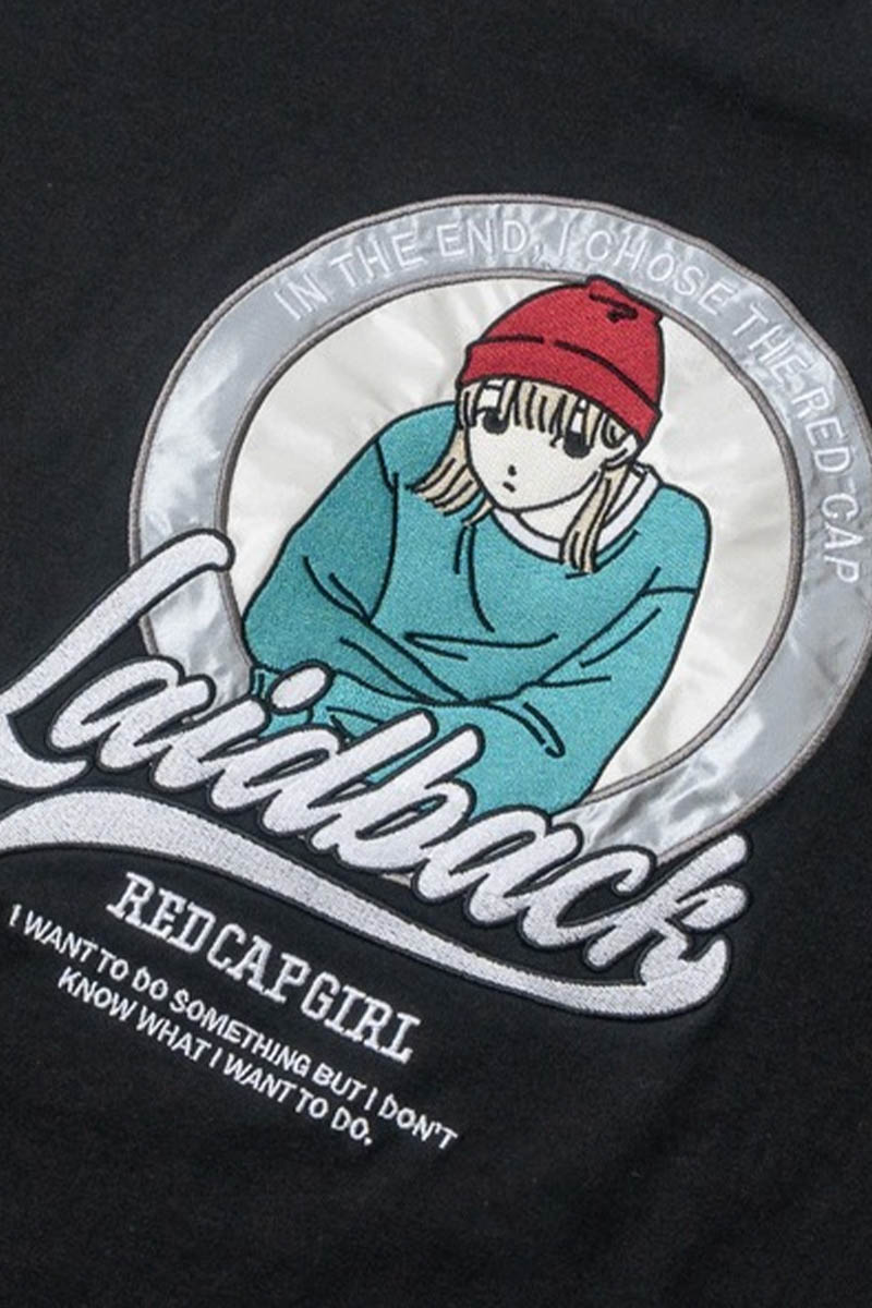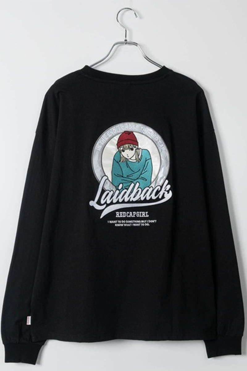 Red Cap Girl(レッド・キャップ・ガール) バック・サテン刺繍ロンT - Black