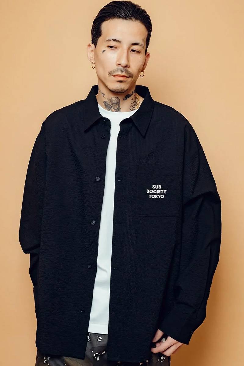 Subciety (サブサエティ) Seersucker shirt - Black