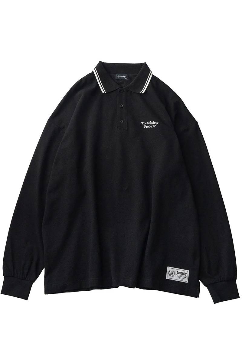 Subciety (サブサエティ) Seed stitch polo shirt - Black