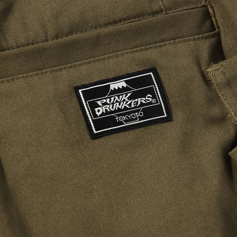 【予約商品】PUNK DRUNKERS (パンク・ドランカーズ) 四角ロゴカーゴショーツ - KHAKI
