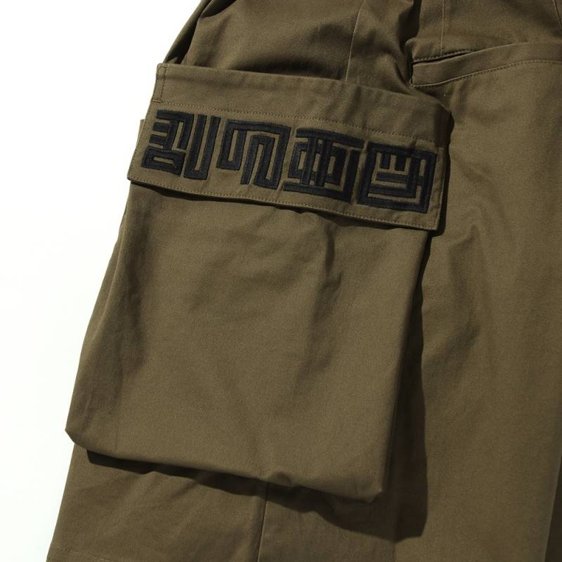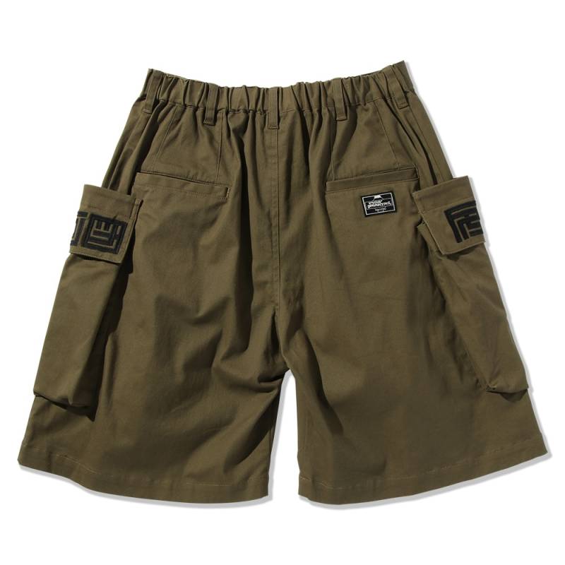 両サイドにスクエアロゴの入ったビッグポケットがついたカーゴショーツ